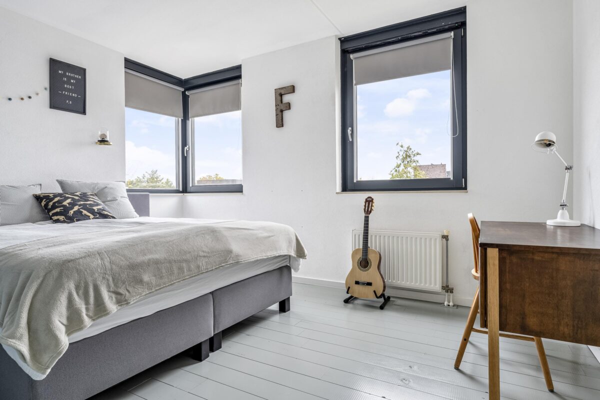 – Ruime zolderslaapkamer met een echte walk-in closet en een berging met de aansluitingen t.b.v. wasapparatuur en opstelling van de CV ketel.