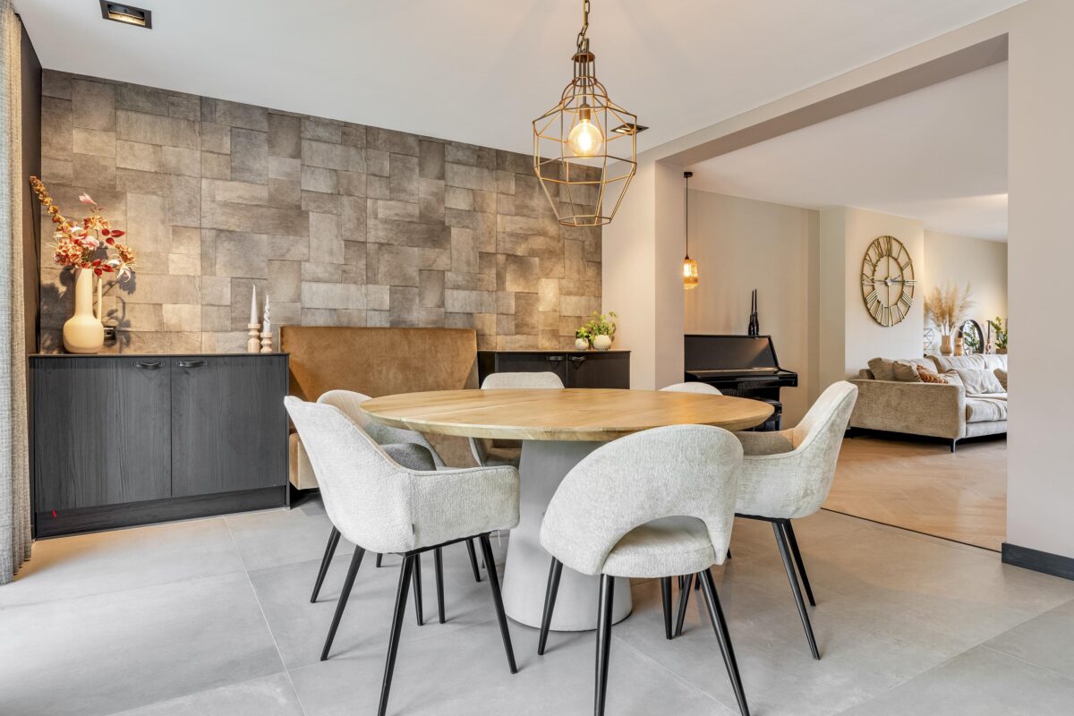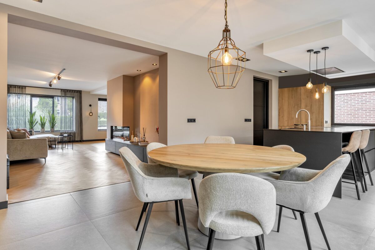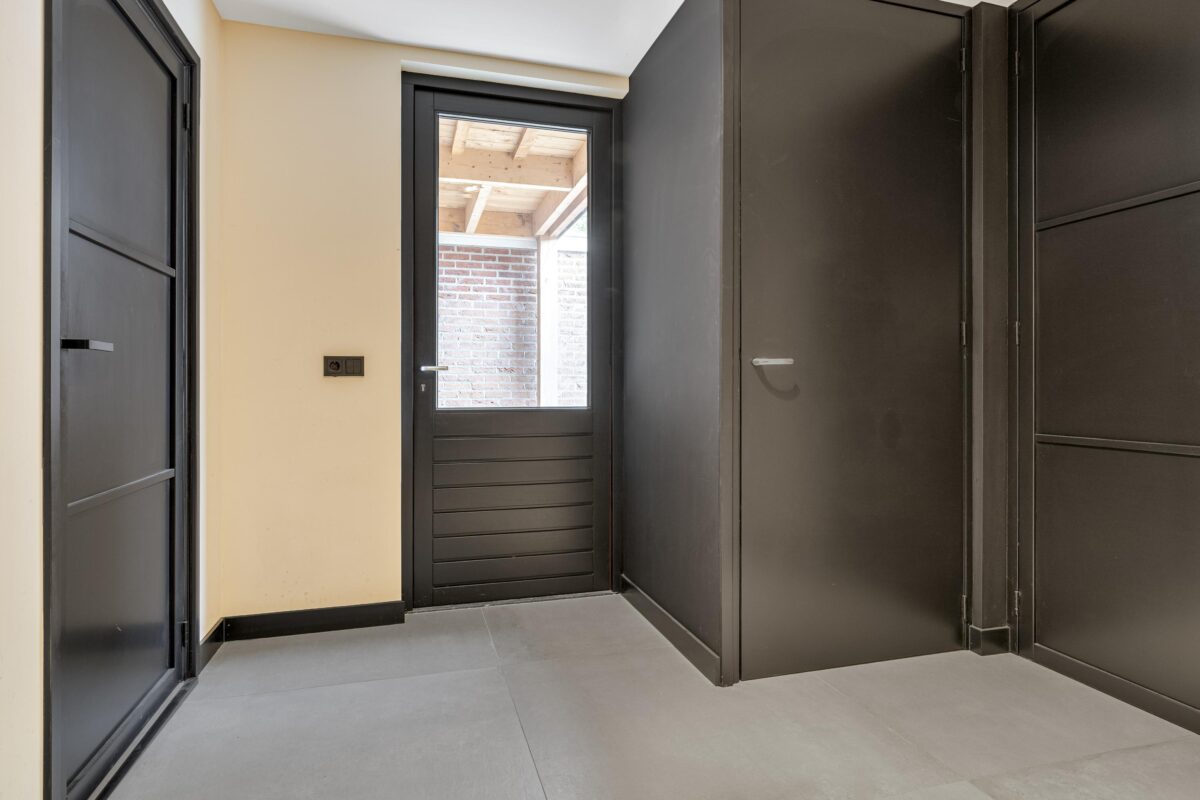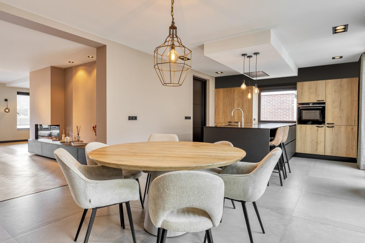 – Riante leefkeuken met zicht op de achtertuin met een grote schuifpui en afgewerkt met een moderne tegelvloer.