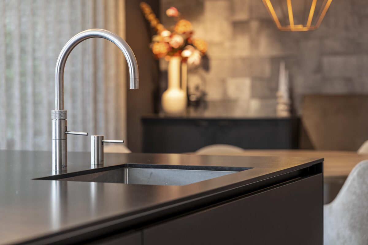 – Het kook (schier) eiland is uitgerust met een inductie kookplaat, vaatwasser, koelkast, vriezer, combioven en Quooker kraan.