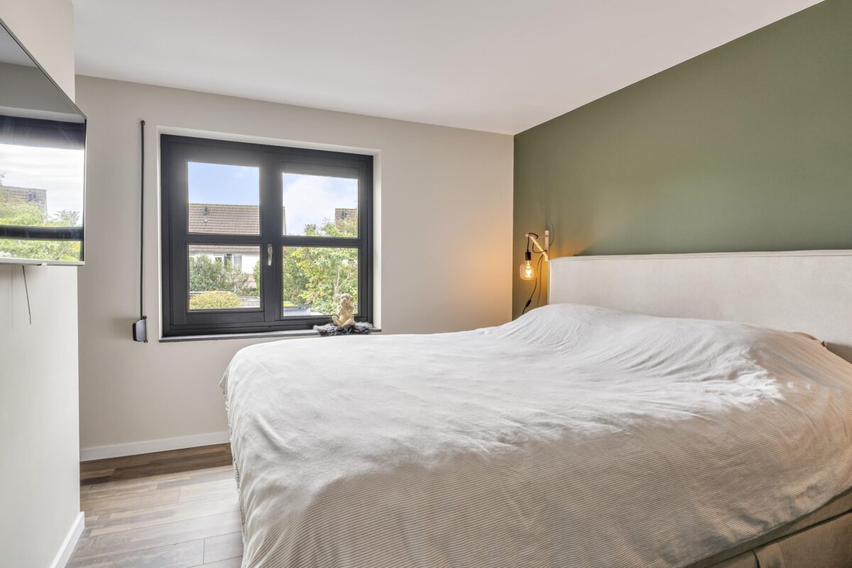 – Eerste verdieping met twee slaapkamers waarvan de ouderslaapkamer de beschikking heeft over een kleedgedeelte met vaste kasten, een aircosysteem er is toegang tot de praktische wasruimte.