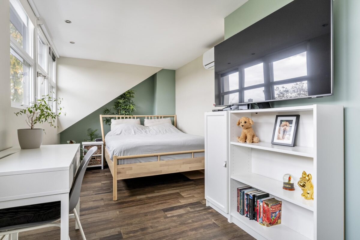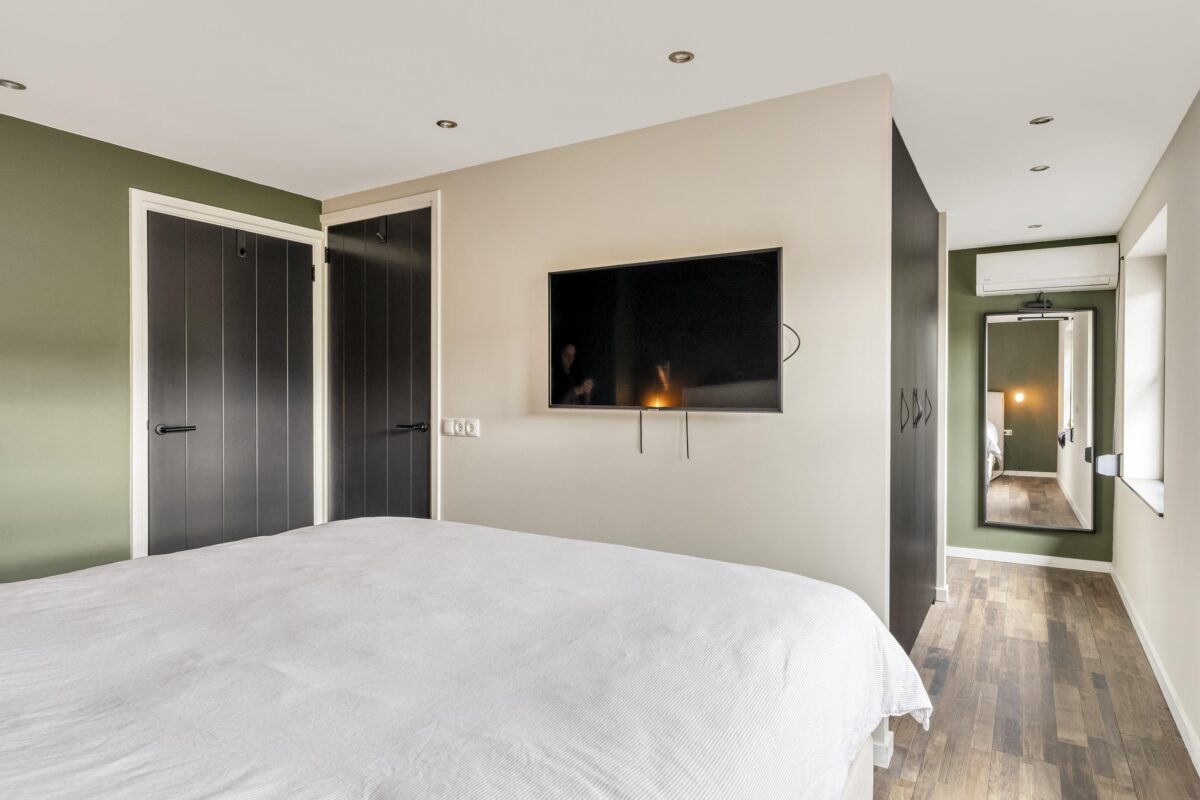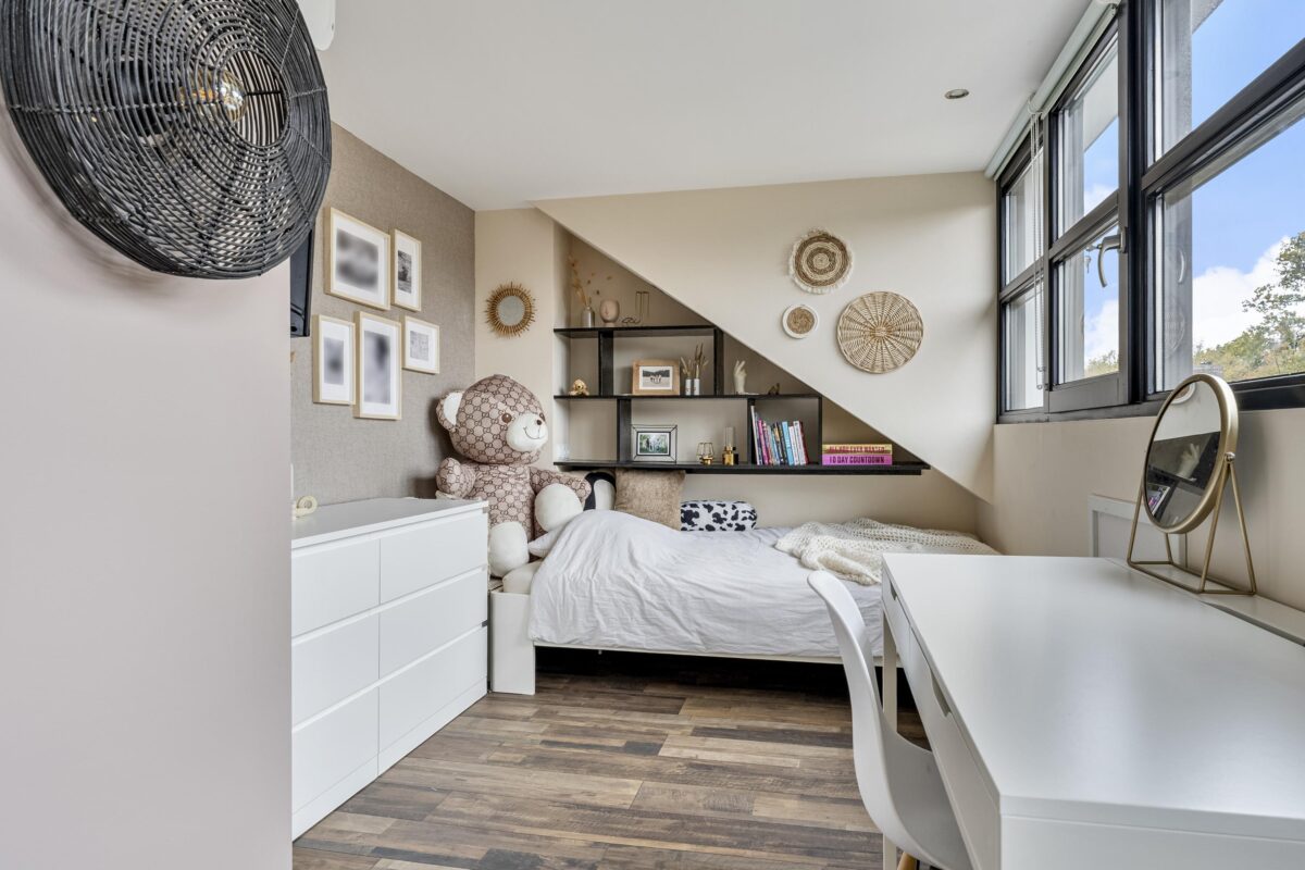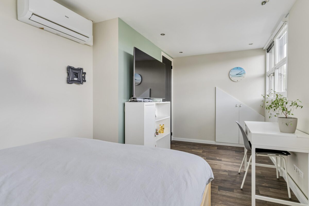 – De tweede verdieping is verdeeld in twee goede slaapkamers waarvan één met een wastafel en vaste kast, beide kamers zijn uitgerust met een aircosysteem en een grote dakkapel.