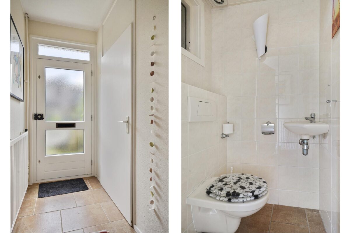 – Lichte hal met toilet, meterkast voorzien van gemoderniseerde groepenkast en trapopgang naar de eerste verdieping.