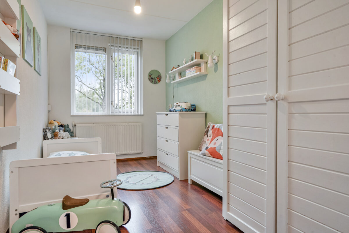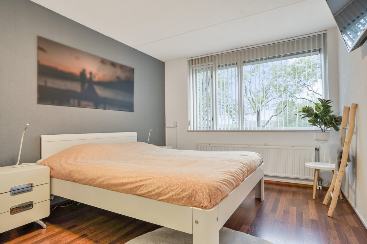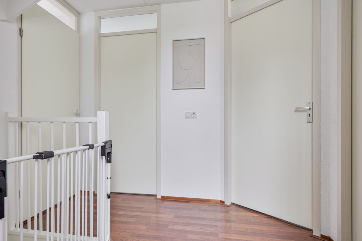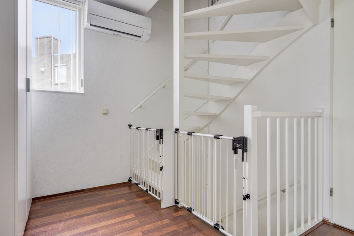 Overloop met airconditioning die de gehele verdieping efficiënt koelt of verwarmt. Drie ruim bemeten slaapkamers, waarvan de hoofdslaapkamer is voorzien van een praktische inloopkast en de slaapkamers aan de voorzijde genieten van een vrij en groen uitzicht.