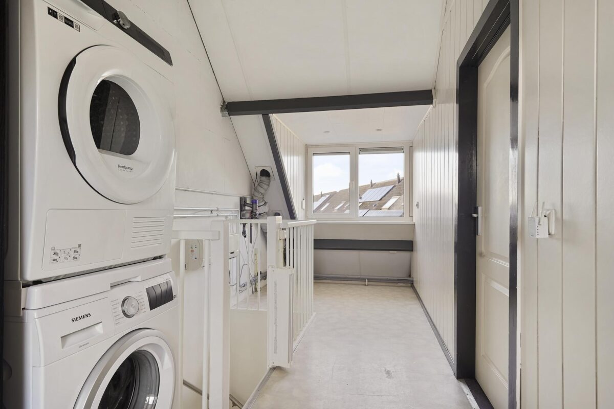 – Ruime voorzolder met voldoende bergruimte, de aansluitingen t.b.v. de wasapparatuur, airco-systeem en opstelling van de CV ketel.