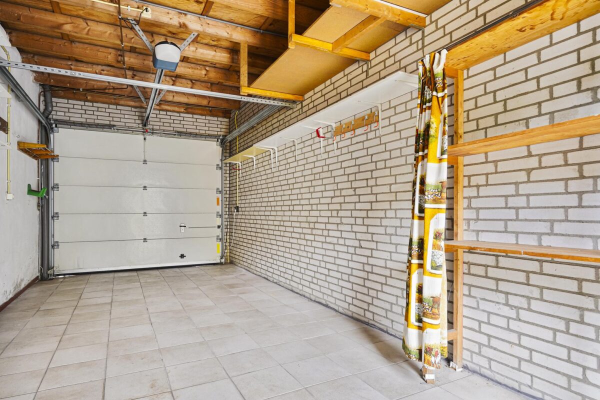 – Grote garage met elektrisch bedienbare sectionaaldeur en toegang tot oprit evenals carport.