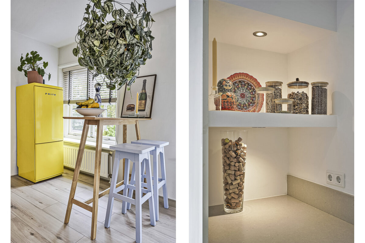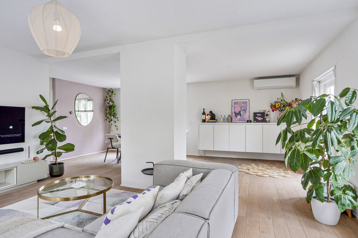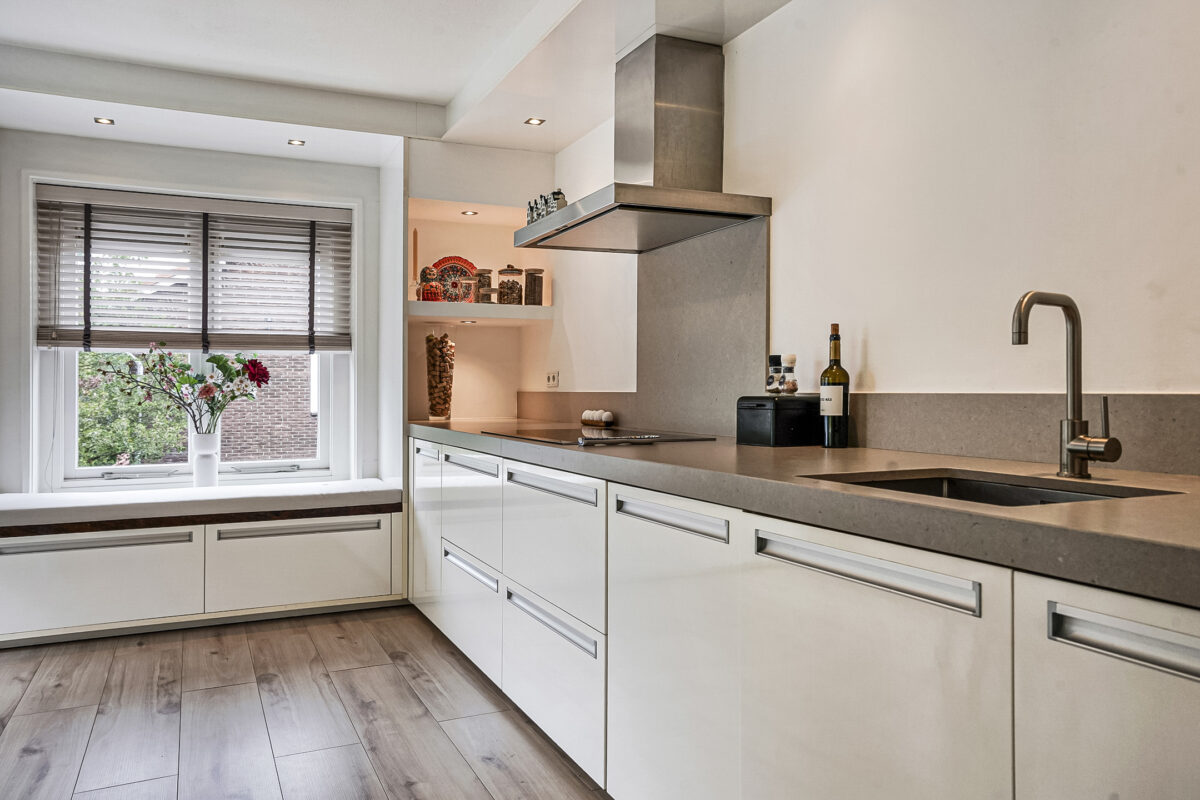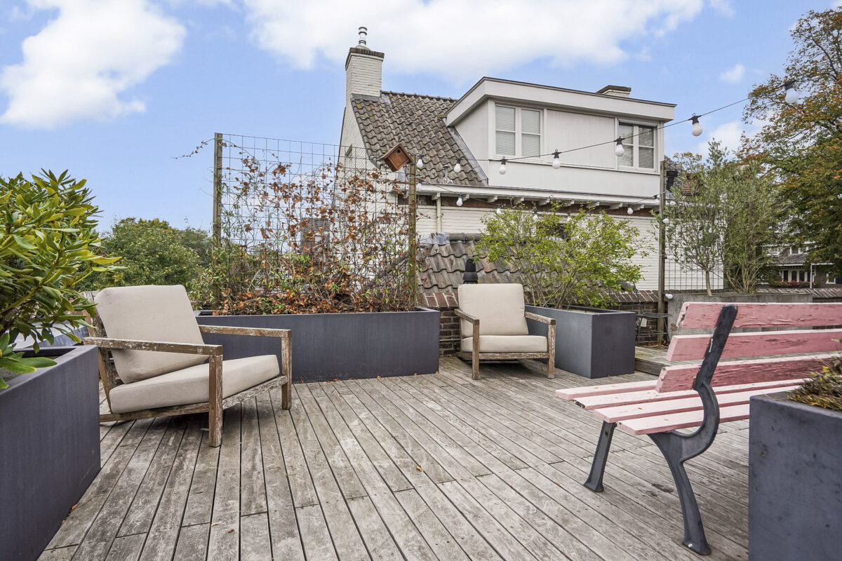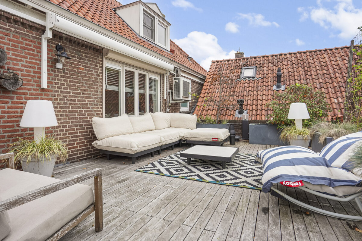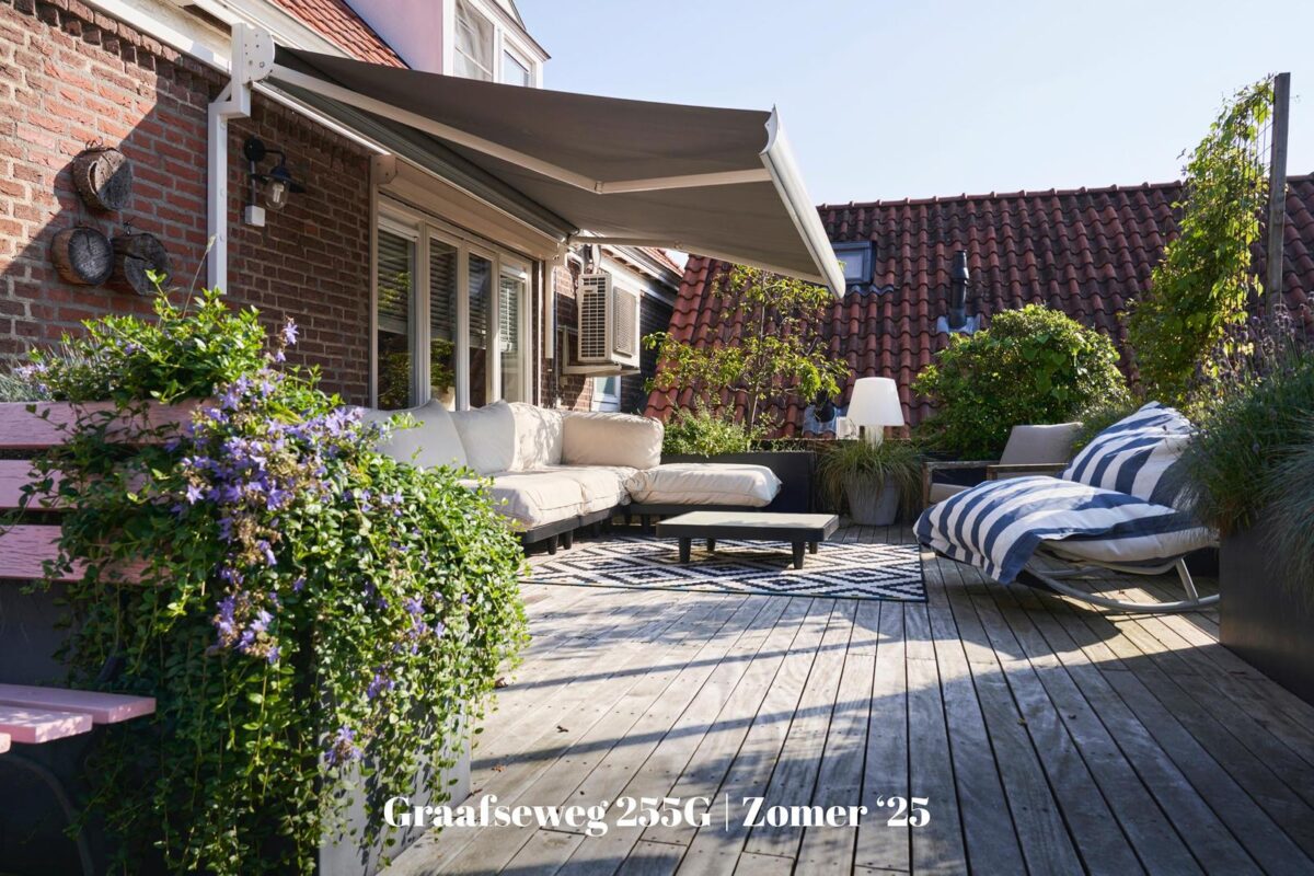 De sfeervolle hal met Potugeese vloertegels met toilet en garderobe leidt naar de ruime, lichte woonkamer met airco, fraaie eikenhouten vloer en dubbele openslaande deuren naar het dakterras. De afgesloten woonkeuken biedt veel bergruimte, een nieuw composieten werkblad en complete inbouwapparatuur (inductiekookplaat, vaatwasser, koelkast en combi-oven; grotendeels vernieuwd in 2019). De royale slaapkamer beschikt over een vaste kast en airco. De moderne badkamer heeft een inloopdouche, tweede toilet, wastafelmeubel en vloerverwarming. Het riante en zonnige dakterras van circa 70 m² ligt rondom de woning.