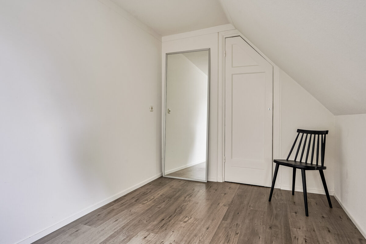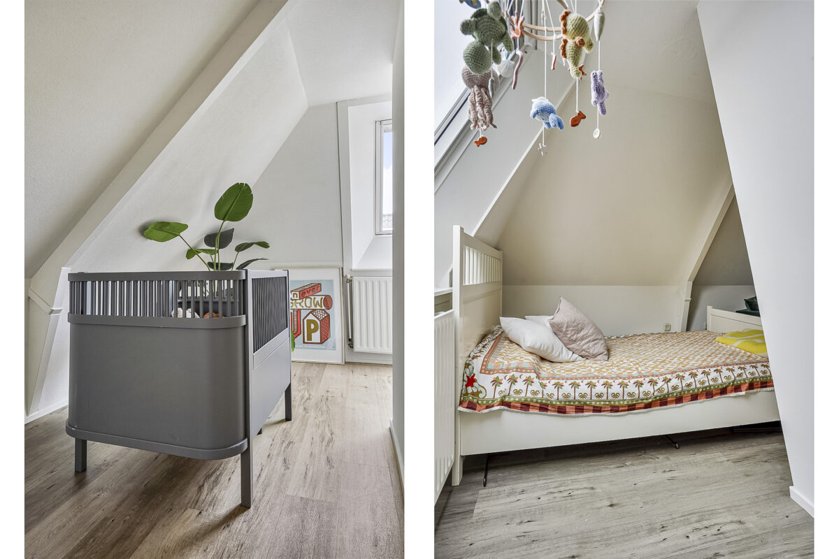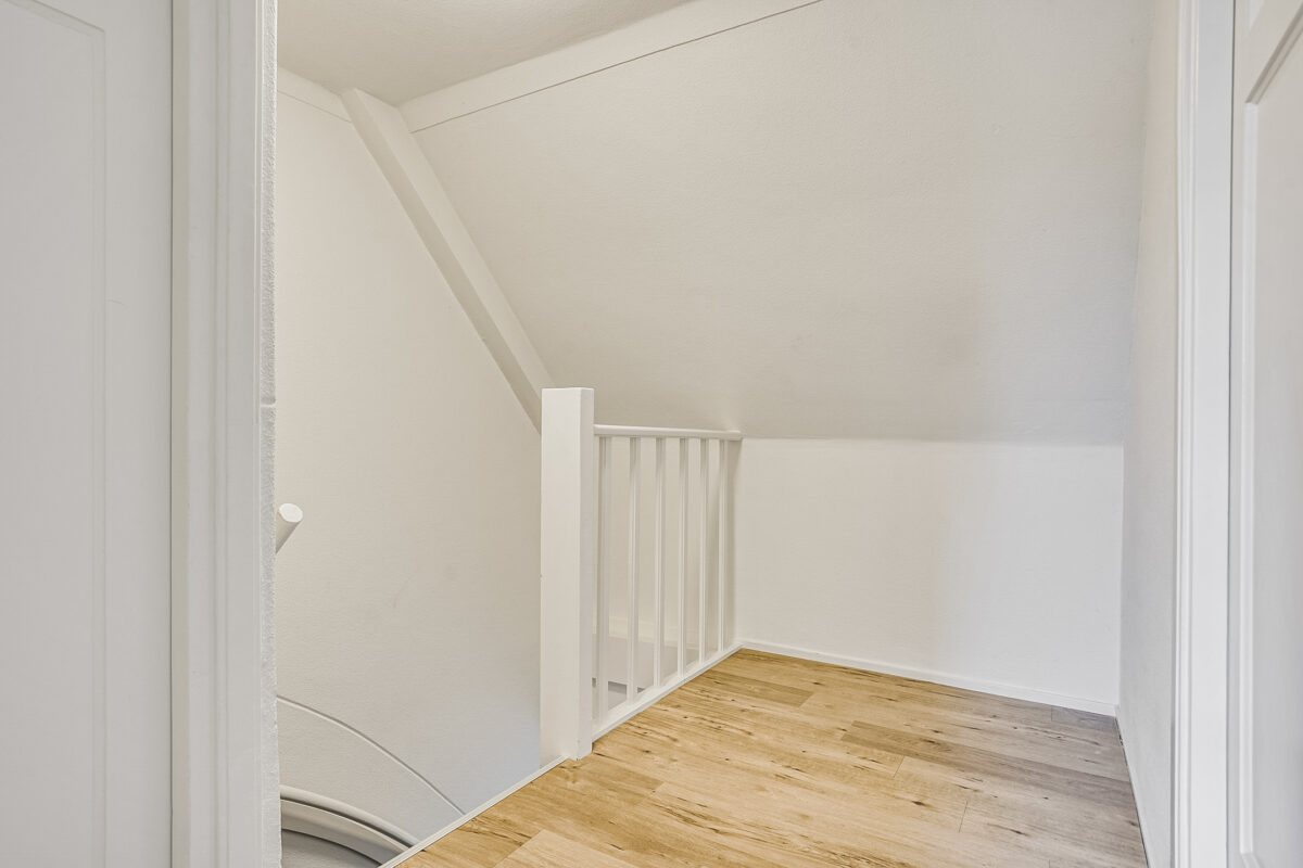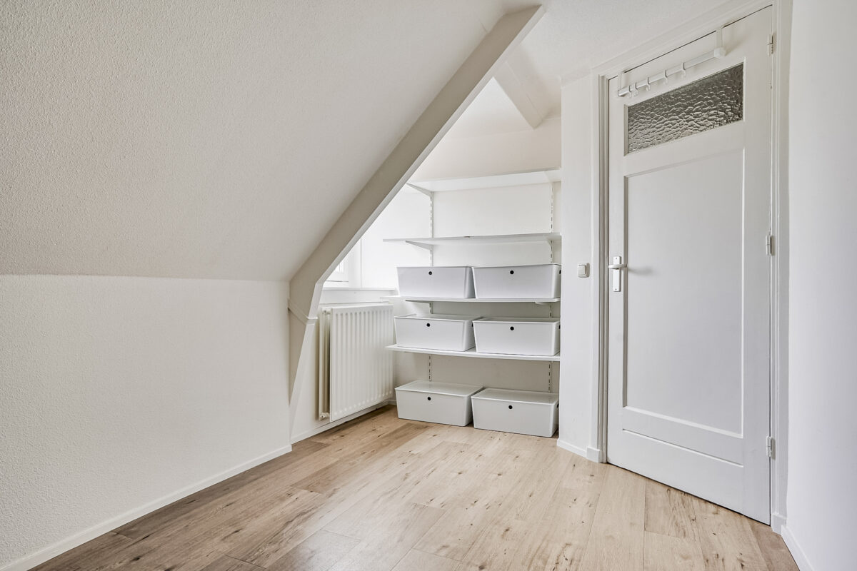 De overloop geeft toegang tot drie slaapkamers met dakkapel. De grootste slaapkamer heeft een extra dakraam. De tweede slaapkamer wordt momenteel gebruikt als kledingkamer. De derde slaapkamer heeft toegang tot een berging met wasmachine- en drogeraansluiting en de cv-ketel.