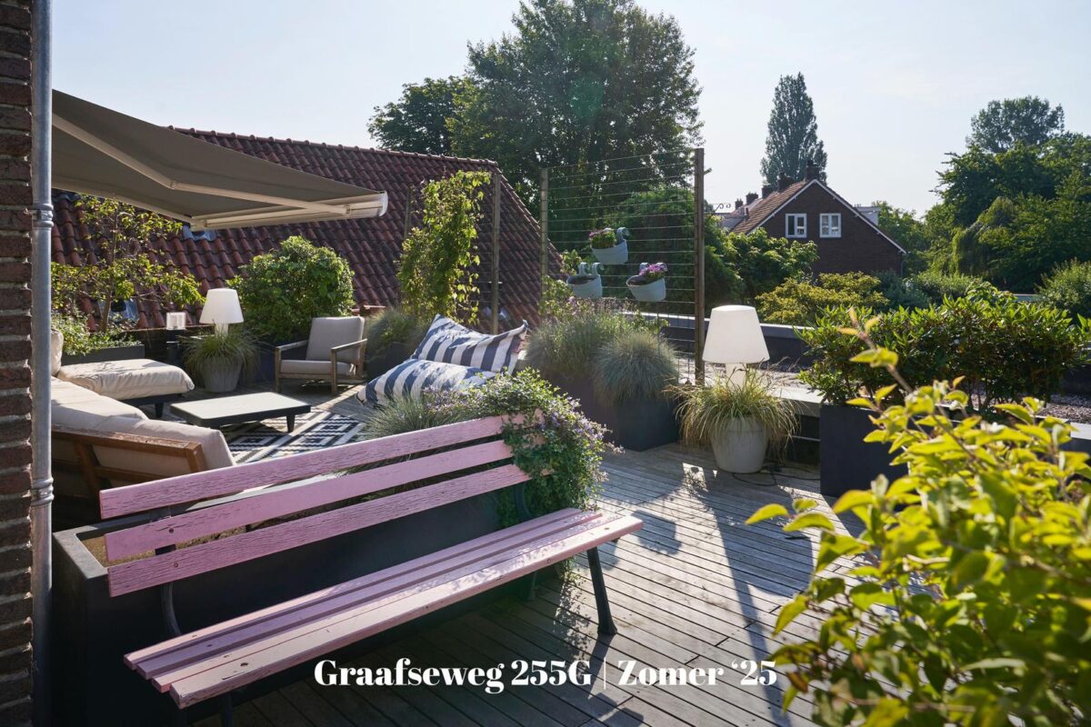 Wonen in of bij de stad betekent meestal kiezen: óf ruimte, óf buitenruimte, óf parkeren. Aan de Graafseweg 255G hoef je geen enkel compromis te sluiten. Deze instapklare, volledig gemoderniseerde dubbele bovenwoning heeft het allemaal: een eigen entree met bergruimte voor fietsen en kinderwagens, een zonnig dakterras van ca. 70 m² en een balkon, meerdere slaapkamers, een moderne badkamer en twee parkeerplaatsen direct bij de woning. Buitenstads wonen met alle voordelen van de stad.