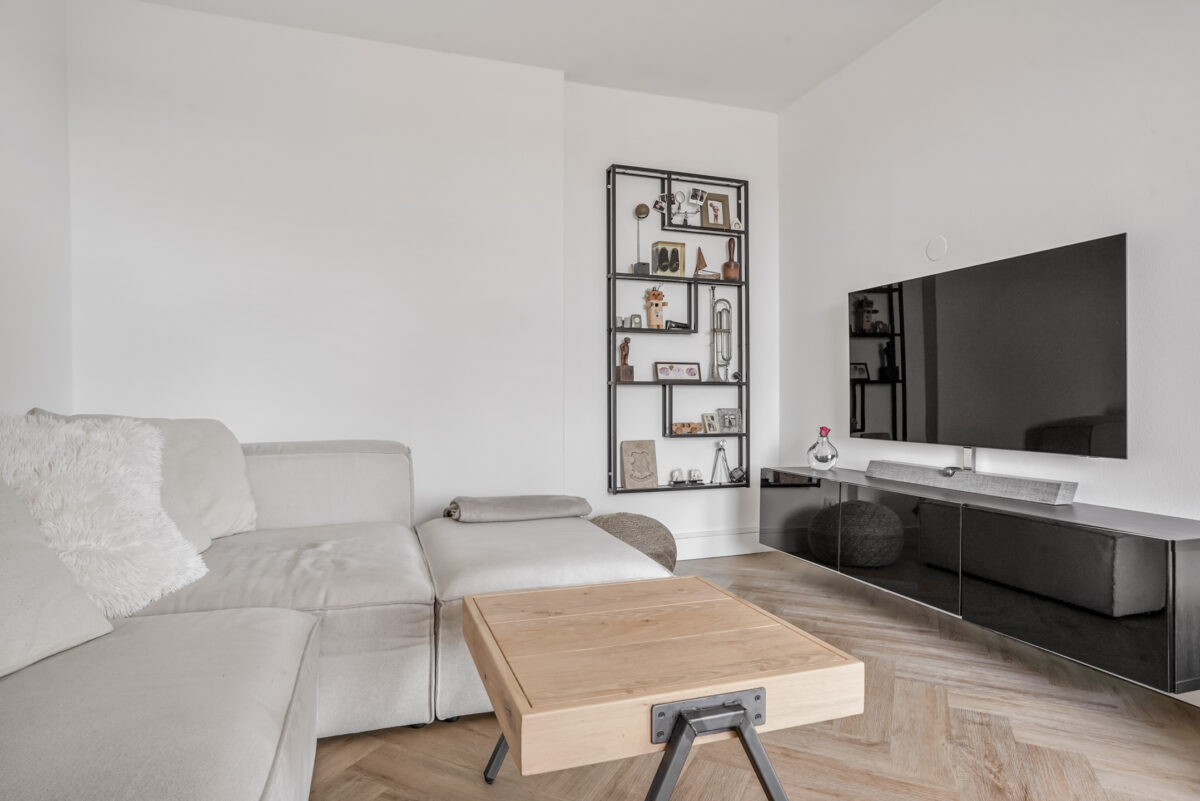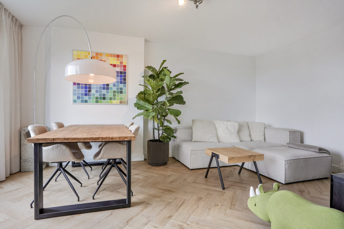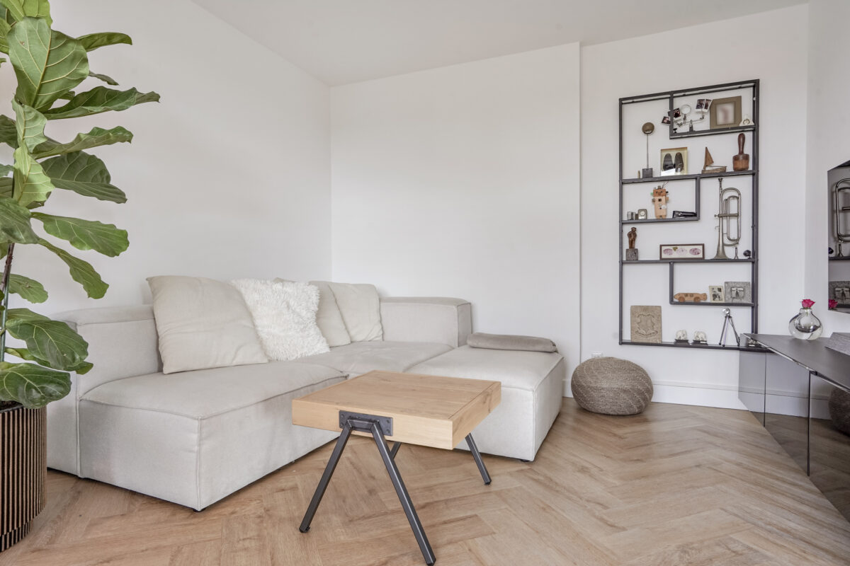 – Een stijlvolle visgraat PVC-vloer door het hele appartement;