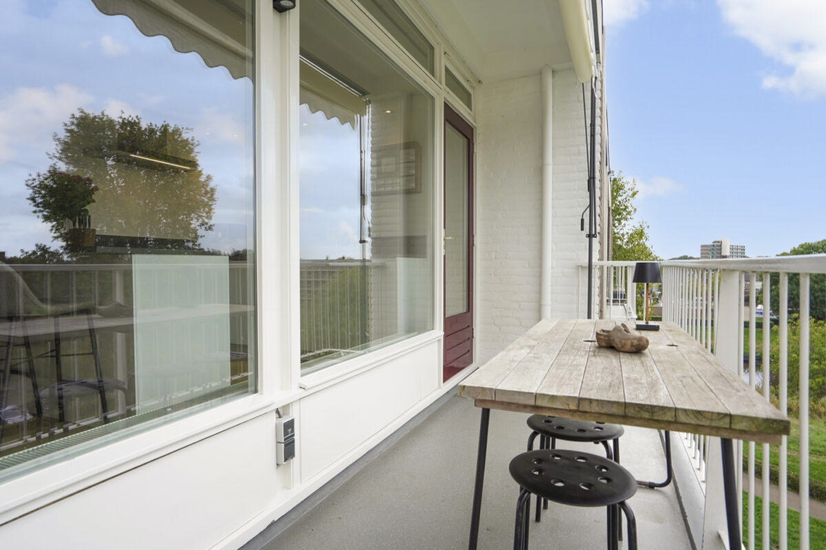 Het appartement biedt aan beide zijden een prachtig, vrij uitzicht over het water en is bijzonder licht dankzij de grote raampartijen. De sfeervolle woonkamer heeft toegang tot het zonnige balkon, waar je vanaf de middag tot zonsondergang kunt genieten van de zon en een schitterend uitzicht.