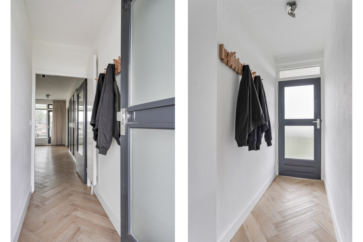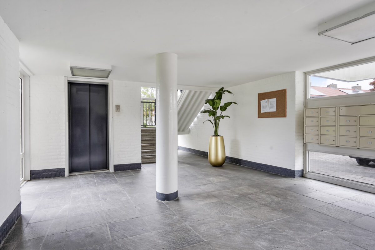Verzorgde, gezamenlijke entree met brievenbussen, video-intercom, lift en trapopgang. In de onderbouw bevindt zich een extra ruime privéberging (hoekligging), een gezamenlijke fietsen- en brommerstalling en een aparte, extra beveiligde gezamenlijke stalling voor elektrische fietsen.