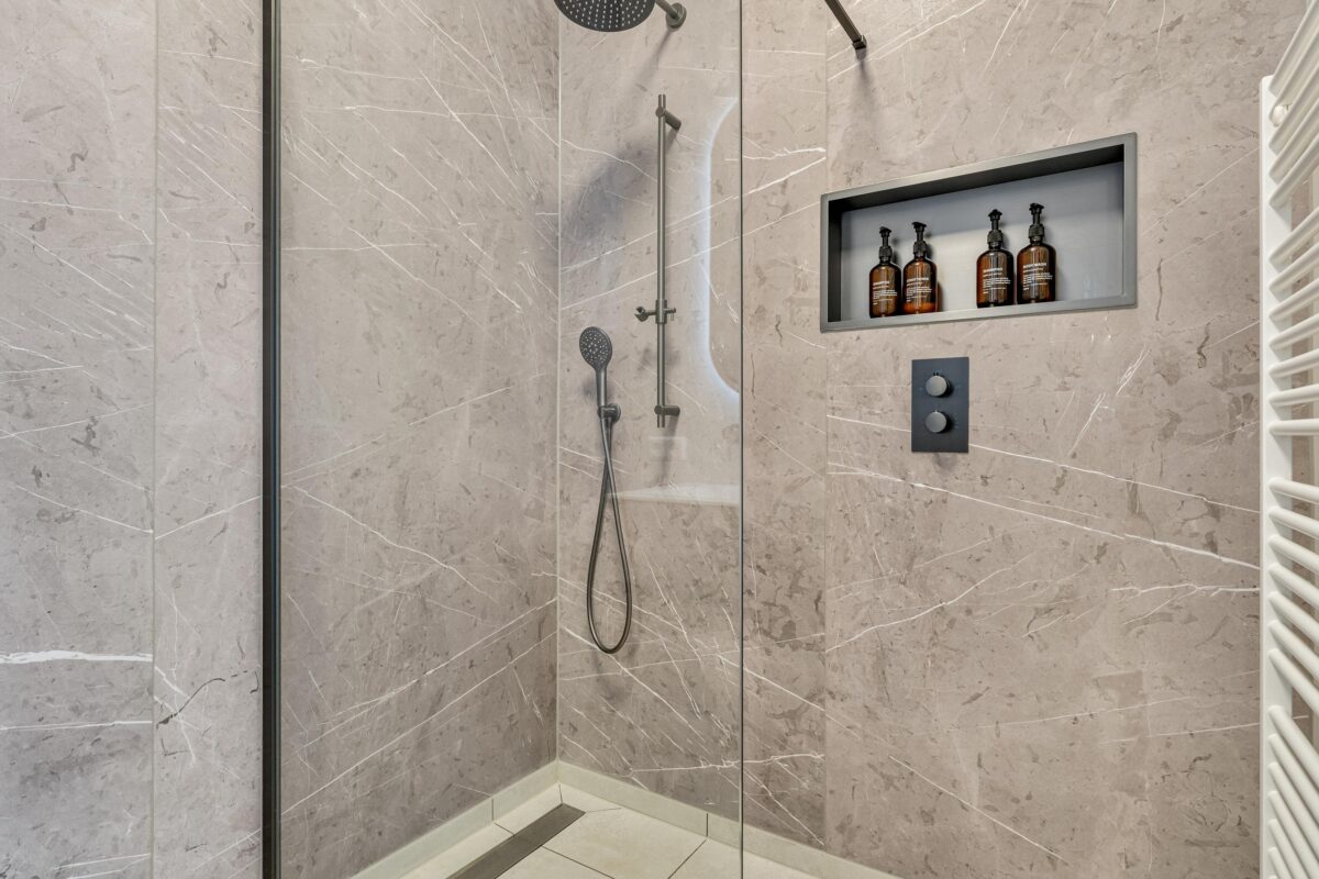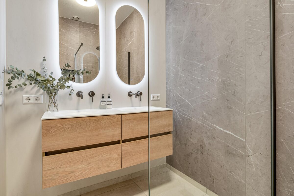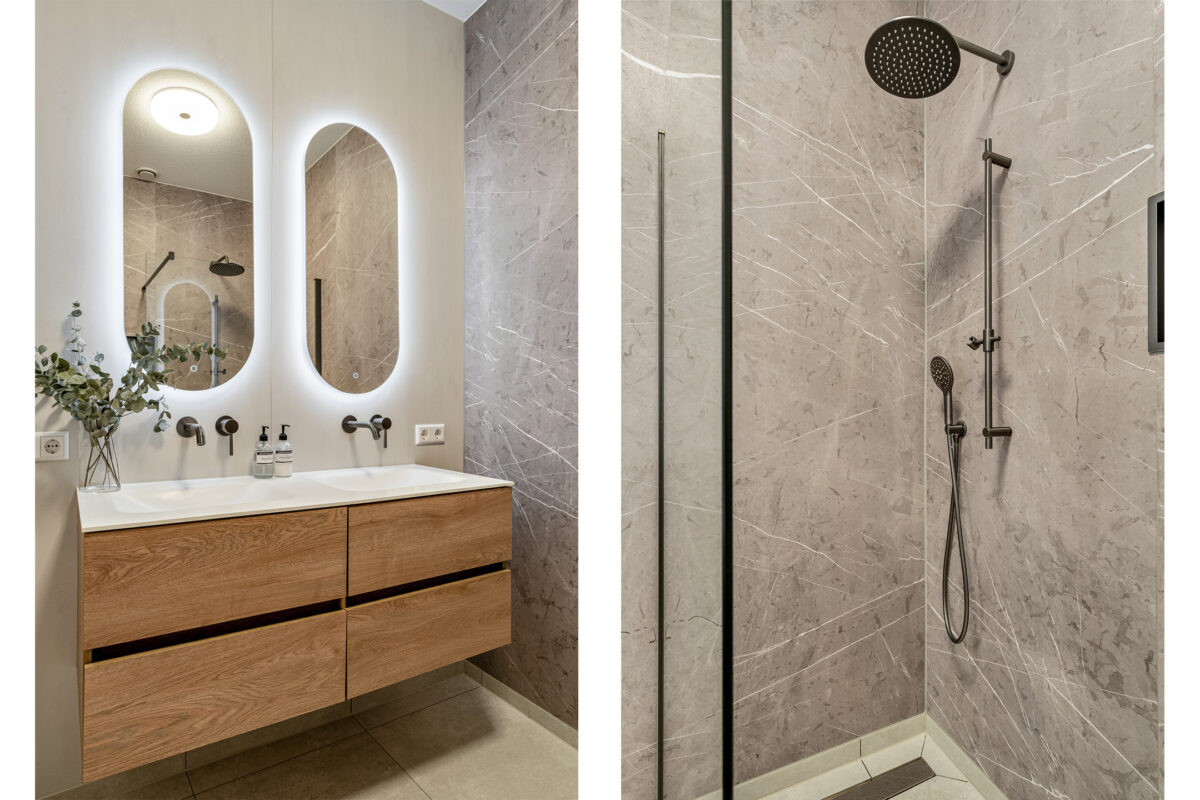 – In 2023 volledig vernieuwde, luxe inpandige badkamer met inloopdouche en dubbele wastafel met meubel