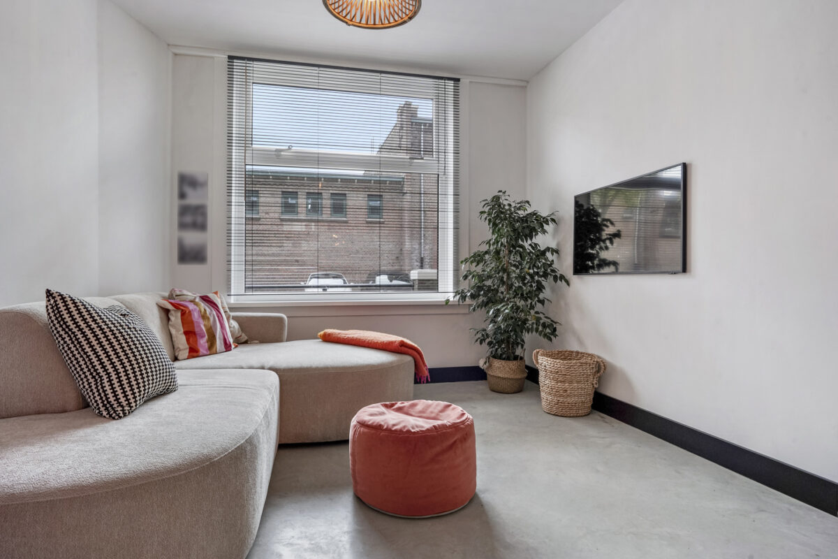 – Industrieel afgewerkte betonvloer doorlopend in zowel de woonkamer en-suite als de slaapkamers