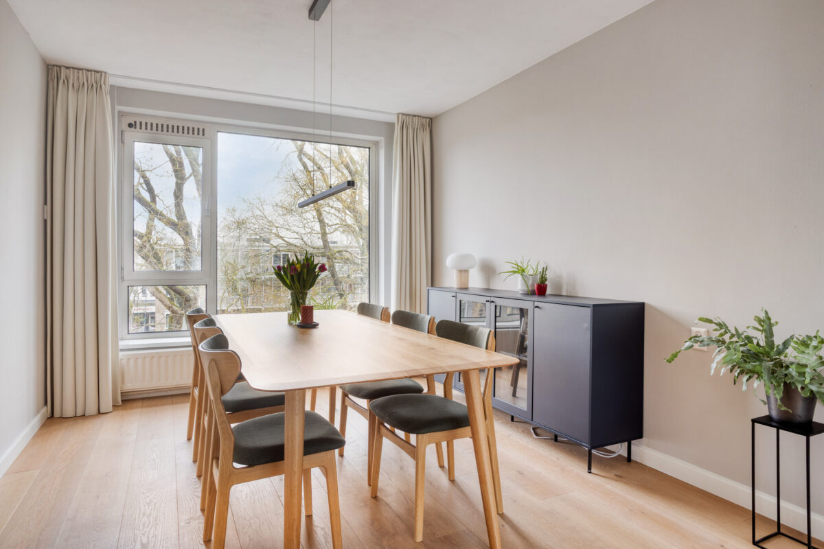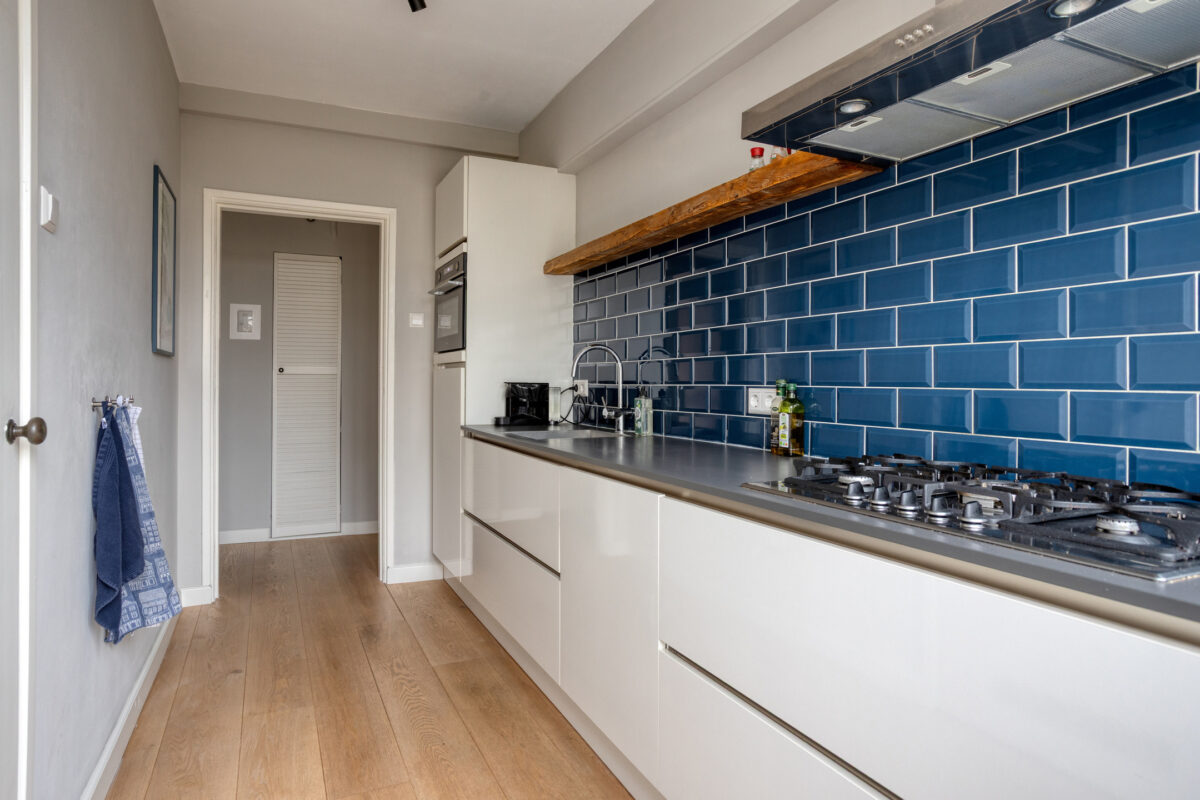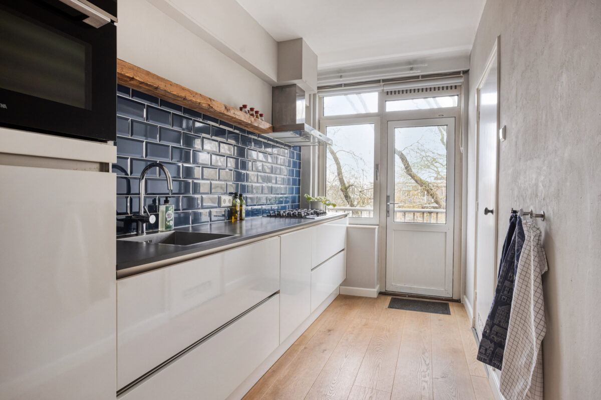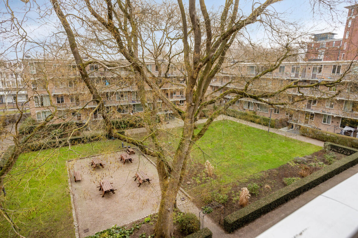 Bij binnenkomst wordt u direct verrast door de prettige ruimtelijkheid en de mooie lichtinval. De royale woon-/eetkamer profiteert van extra daglicht dankzij het zijgevelraam en biedt volop mogelijkheden voor een sfeervolle en comfortabele inrichting. De afgesloten, moderne keuken is voorzien van diverse inbouwapparatuur, waaronder een nieuwe Bosch vaatwasser (2025), een 5-pits gaskookplaat, combi oven/magnetron en koelkast. Vanuit de keuken bereikt u het zeer brede balkon met uitzicht op de groene en verzorgde gezamenlijke binnentuin. Een fijne plek om te ontspannen.