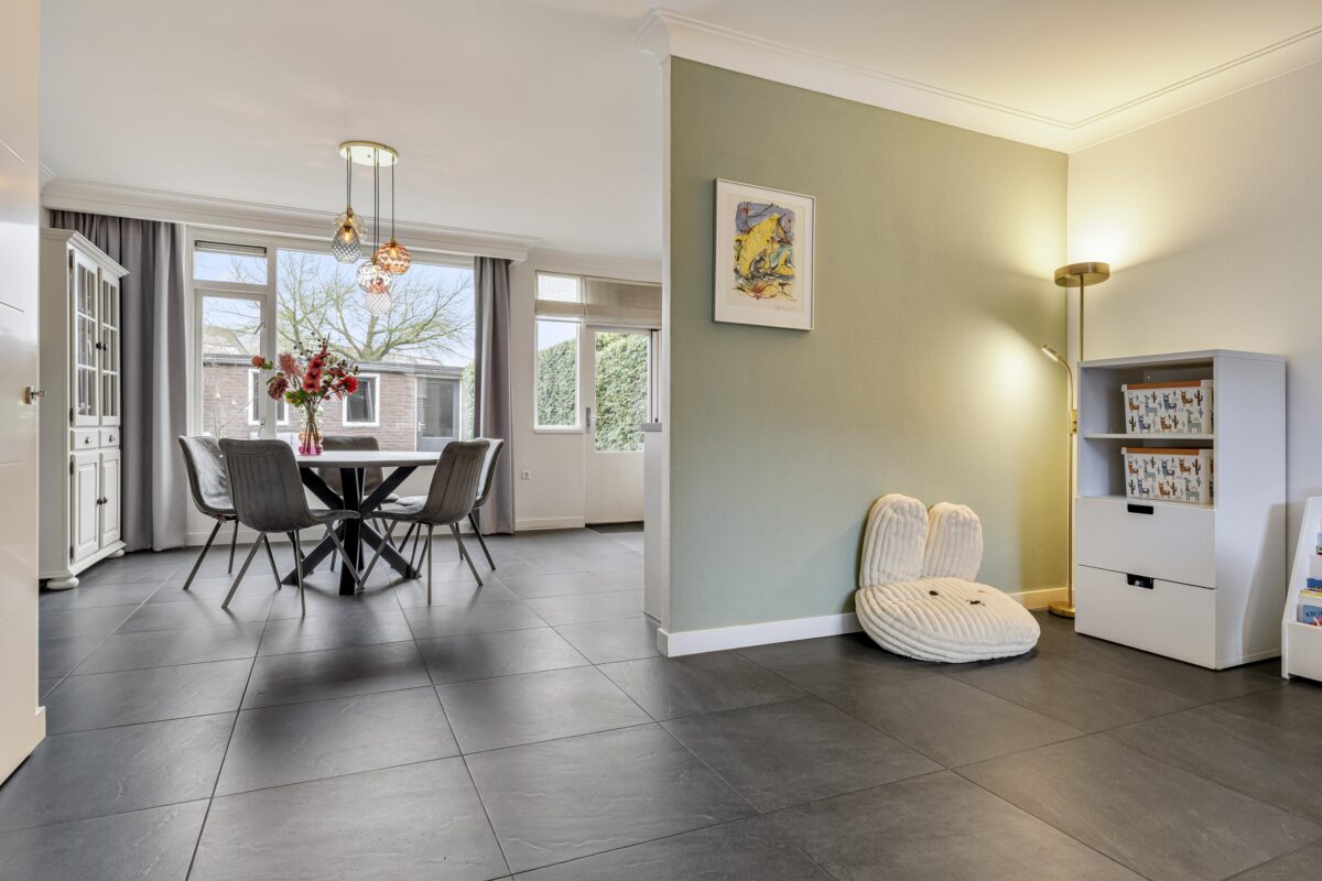 – Heerlijke lichte en ruime woonkamer met een moderne tegelvloer voorzien van vloerverwarming.
