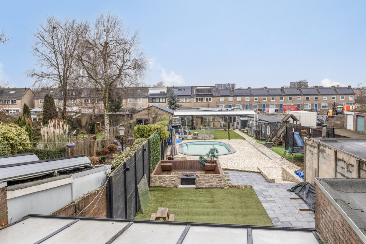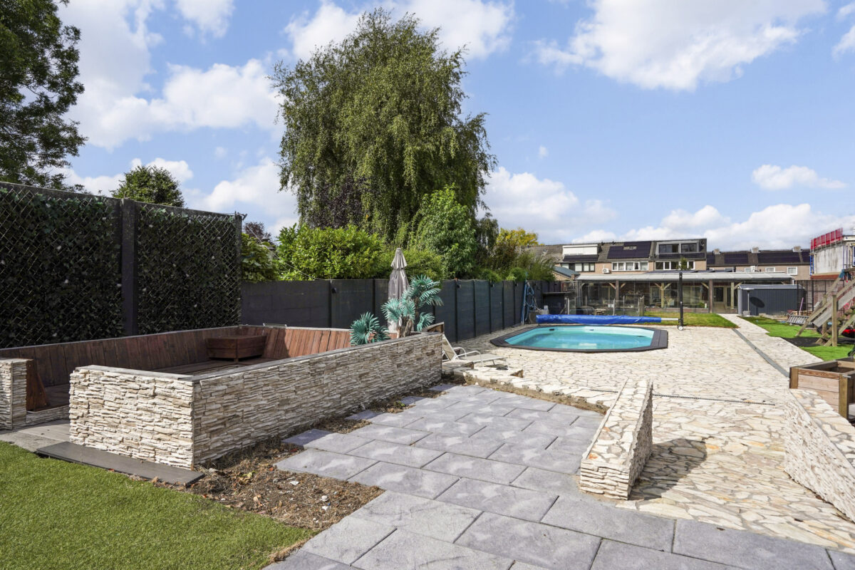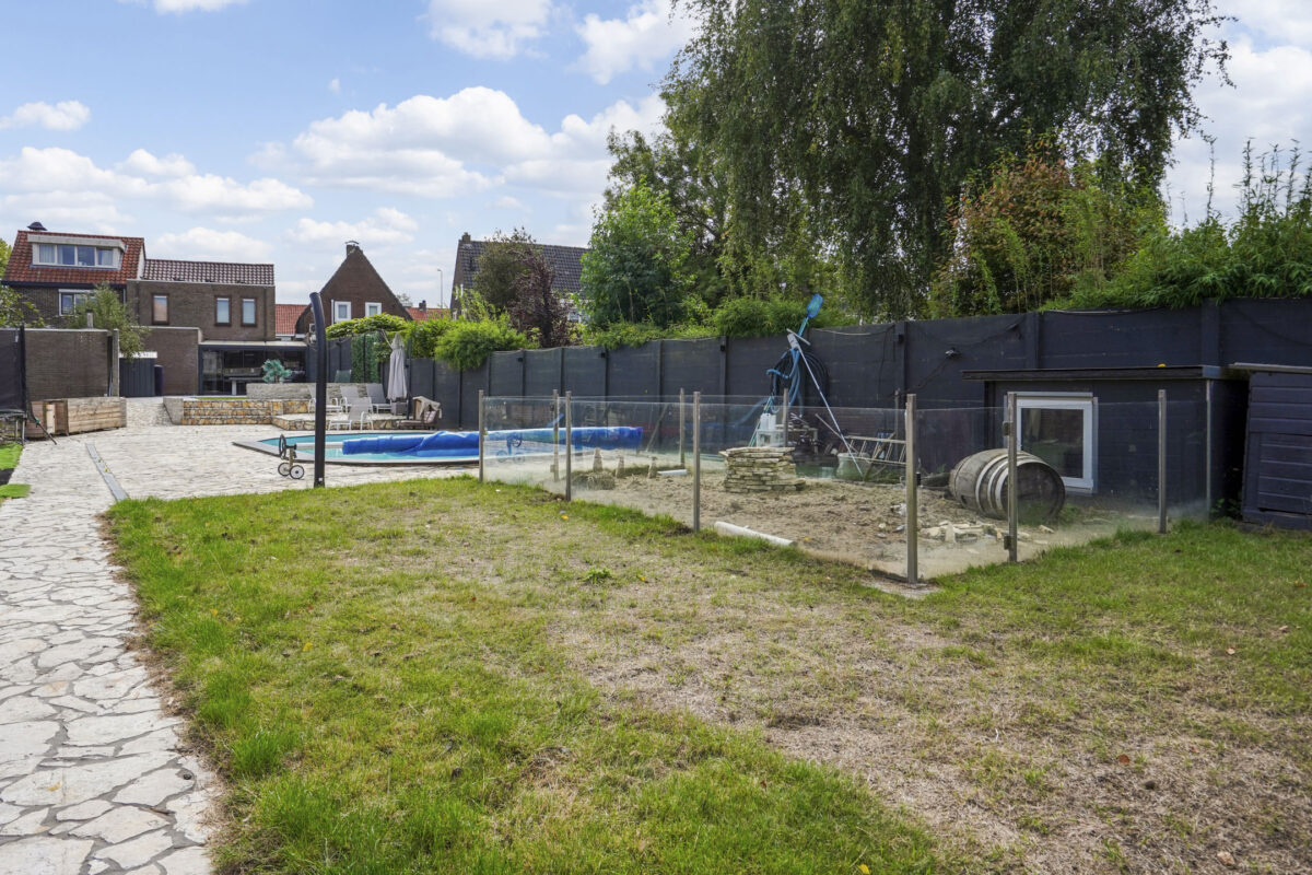 Stap uw achtertuin in en laat u verrassen door de ultieme combinatie van comfort en ontspanning. Het riante perceel biedt volop ruimte om te genieten van lange zomeravonden, terwijl het luxe zwembad dé plek is om op warme dagen heerlijk af te koelen. Of u nu wilt relaxen aan de waterkant of juist actief van uw tuin wilt genieten, deze buitenruimte is een absolute droom voor tuin- en buitenliefhebbers.