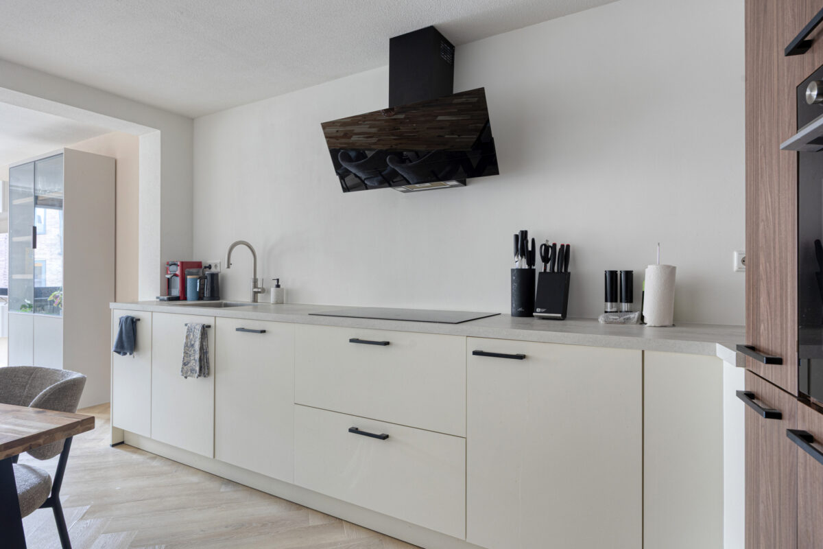 • Luxe Bruynzeel keuken met inductiekookplaat, vlakscherm afzuigkap, grote multifunctionele oven, koelkast, vriezer, vaatwasser en Quooker kraan