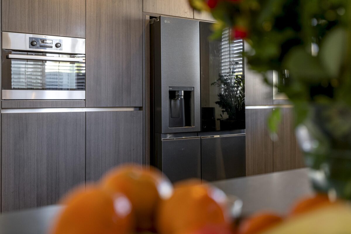 Vernieuwde op maat gemaakte Eggersmann woonkeuken (mei 2025) – een absolute eyecatcher. Voorzien van een composieten werkblad, inductiekookplaat met geïntegreerde afzuiging, ingebouwd koffiezetapparaat, combi-oven/magnetron, Quooker en een Amerikaanse LG InstaView Door-in-Door koelkast. Uiteraard met een overvloed aan kastruimte en lades. Hier kook je niet. Hier creëer je.