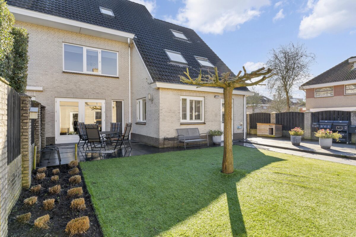 De verzorgde achtertuin is gunstig gelegen op het westen en biedt volop privacy. Meerdere terrassen en diverse beplanting maken dit een heerlijke plek om te ontspannen of gasten te ontvangen.