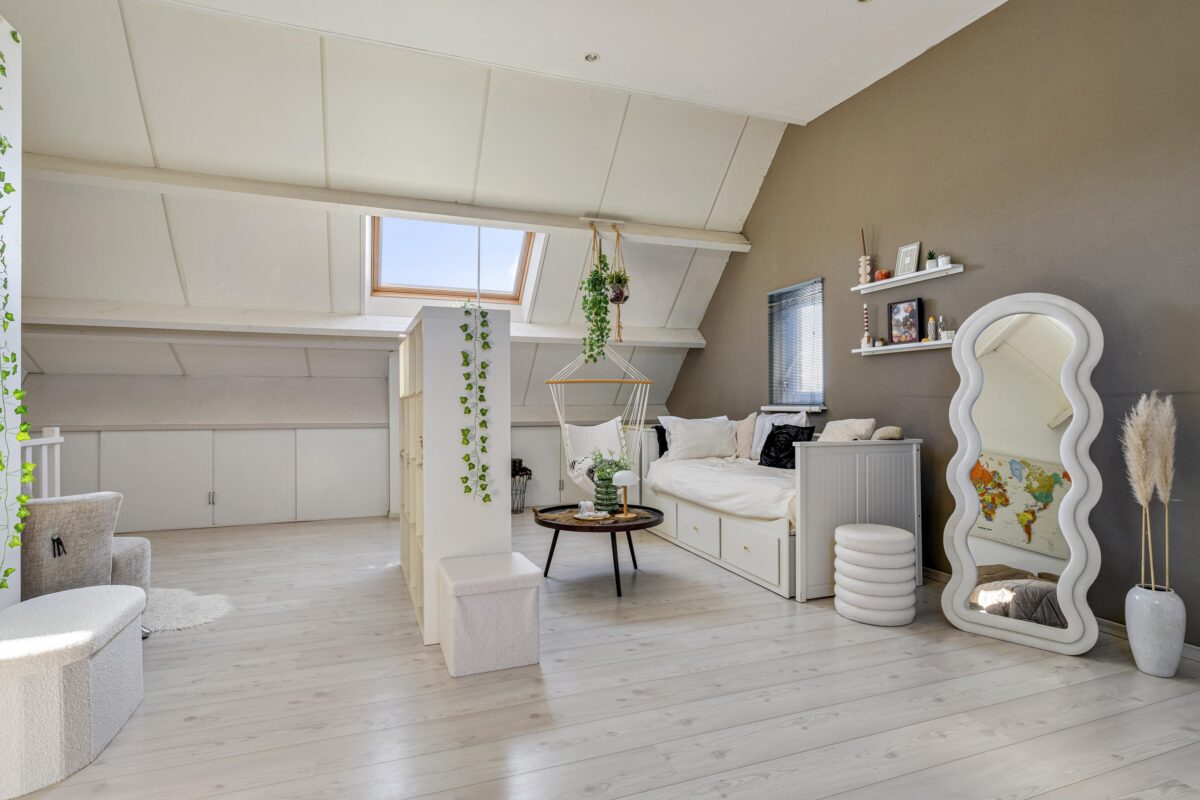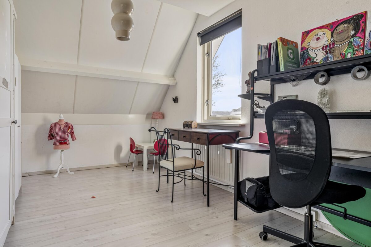 Via een vaste trap bereik je de afgesloten tweede verdieping. Hier bevindt zich een zeer ruime zolderkamer die zich uitstekend leent als vijfde of zelfs zesde slaapkamer, gym, hobbyruimte of studio. Daarnaast is er nog een aparte bergzolder/kamer aanwezig.