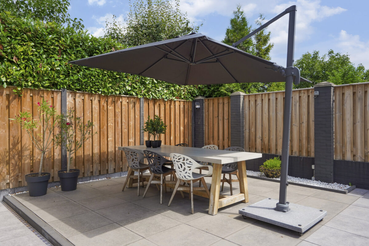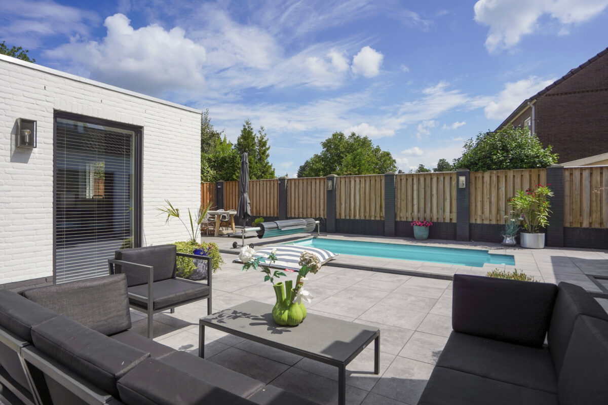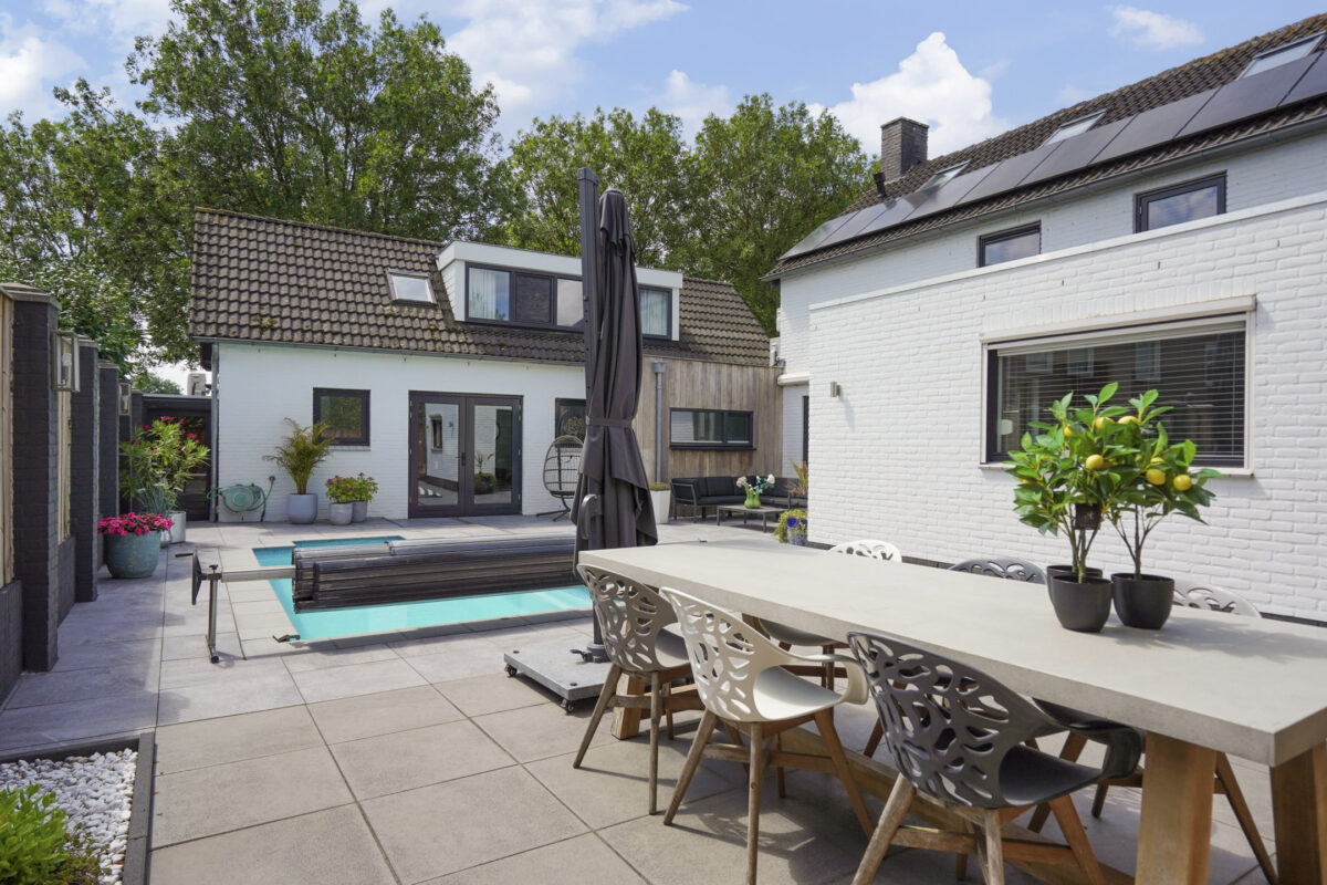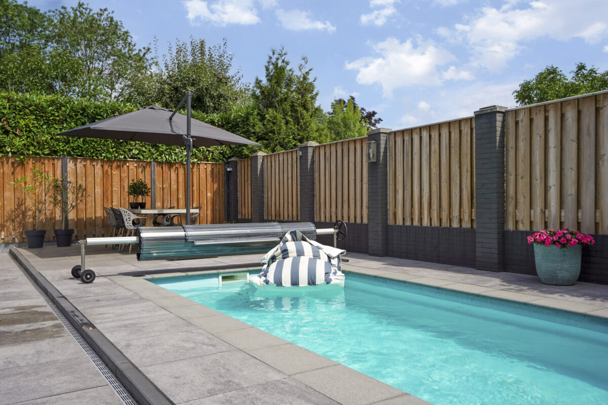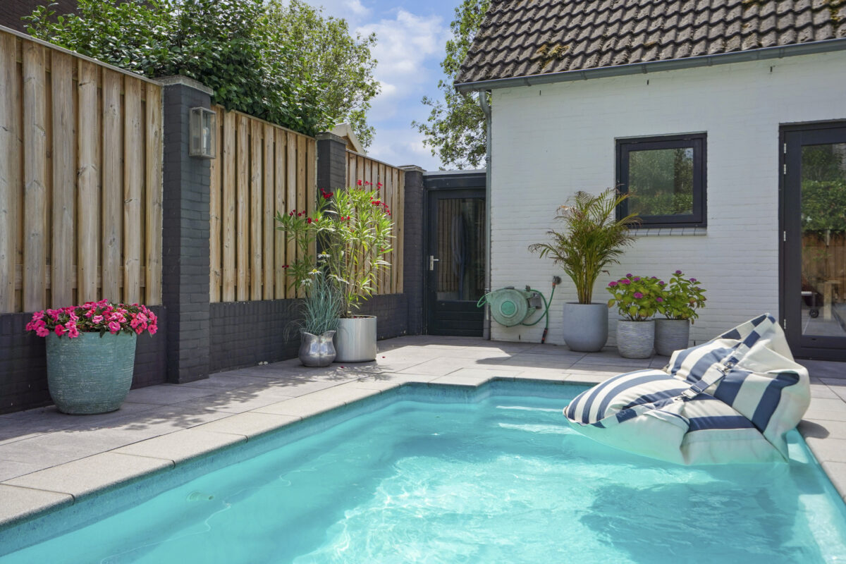 De tuin is een oase van rust en privacy: perfect om te ontspannen, te borrelen of lange zomerdagen te genieten aan het zwembad.