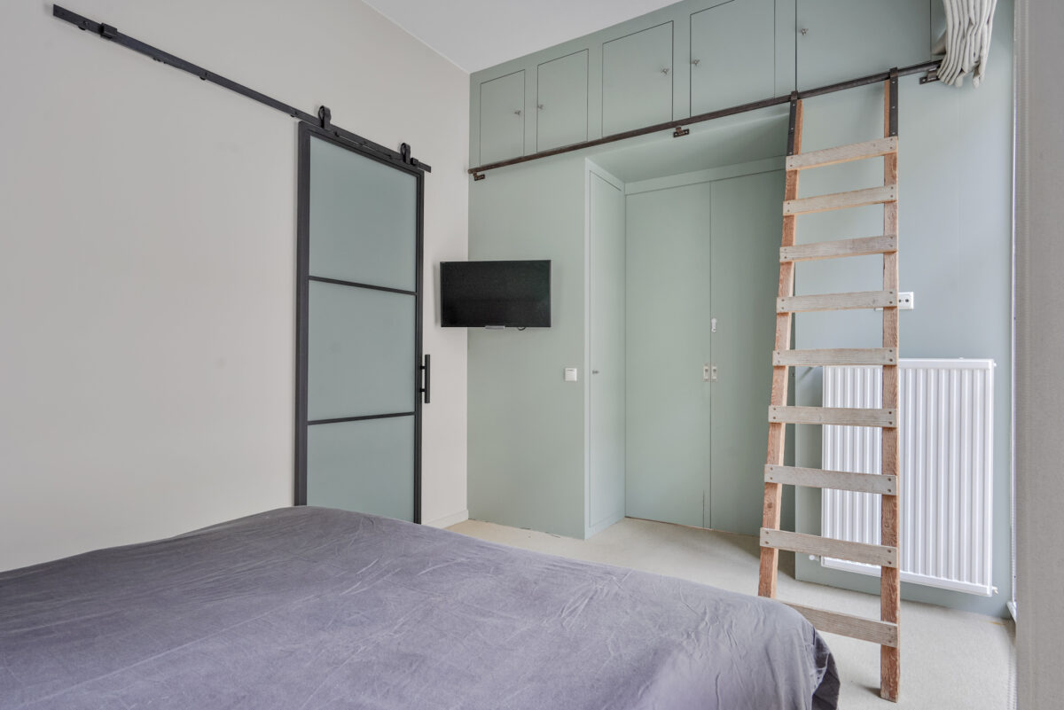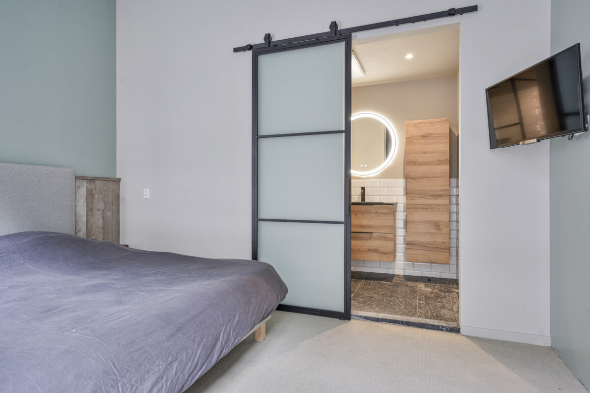 – Op maat gemaakte en suite kasten met genoeg ruimte voor kleding etc. en met schuifdeuren naar de slaapkamer.