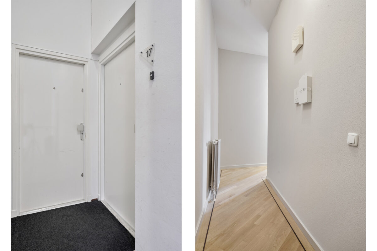 – Gezamenlijke entree met intercom en brievenbussen naar centrale hal met trapopgang en lift.