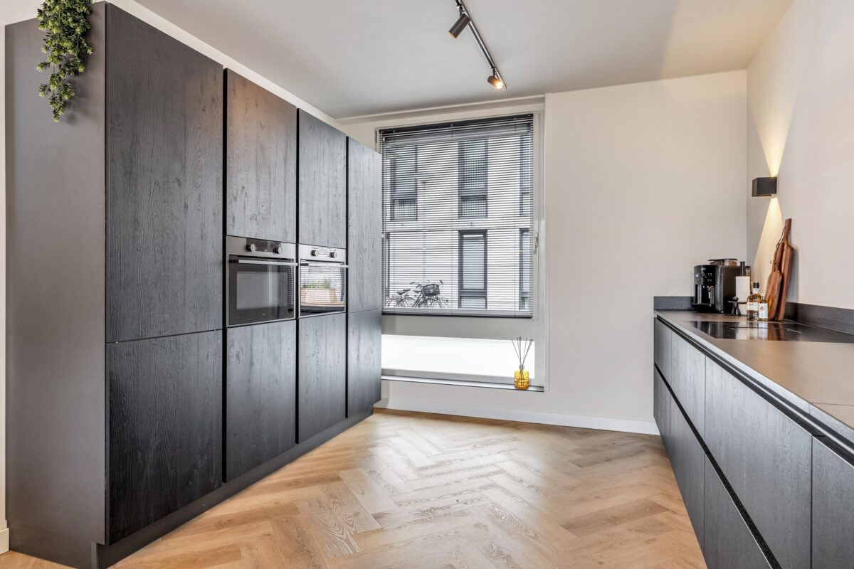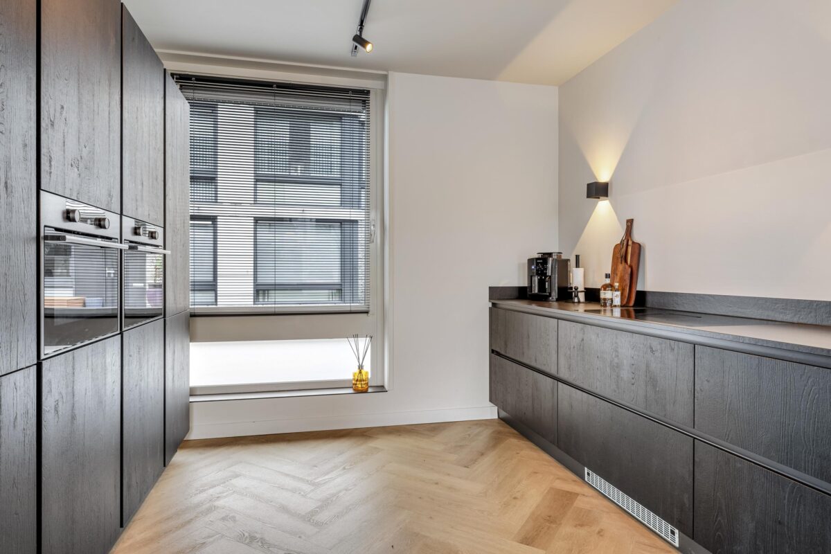 De indeling is verrassend speels dankzij het split-level ontwerp. In de welkomsthal met toilet en stalen glazen deur stap je de begane grond binnen met een PVC-vloer met houtnerfstructuur en vloerverwarming. Hier vind je een fantastische leefkeuken met de in 2022 geplaatste Brunzeel-keuken, voorzien van een composieten werkblad, Quooker-kraan, vaatwasser, ruime koelkast en aparte volwaardige vriezer, dubbele combi-oven/magnetron en een inductiekookplaat met Atag-inbouwafzuiging. Daarnaast beschikt de leefkeuken over slim ingedeelde kastruimte en toegang tot de achterom, waar je met een Frans bistrosetje heerlijk privé buiten kunt zitten in een beschutte omgeving. Voor de woning staat een speels bankje waar je ontspannen kunt zitten en contact maakt met buurtbewoners of voorbijgangers richting het park.