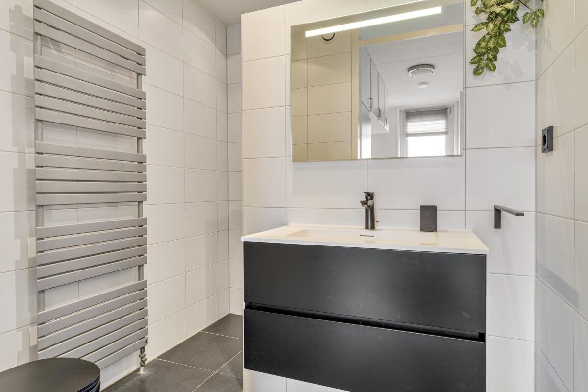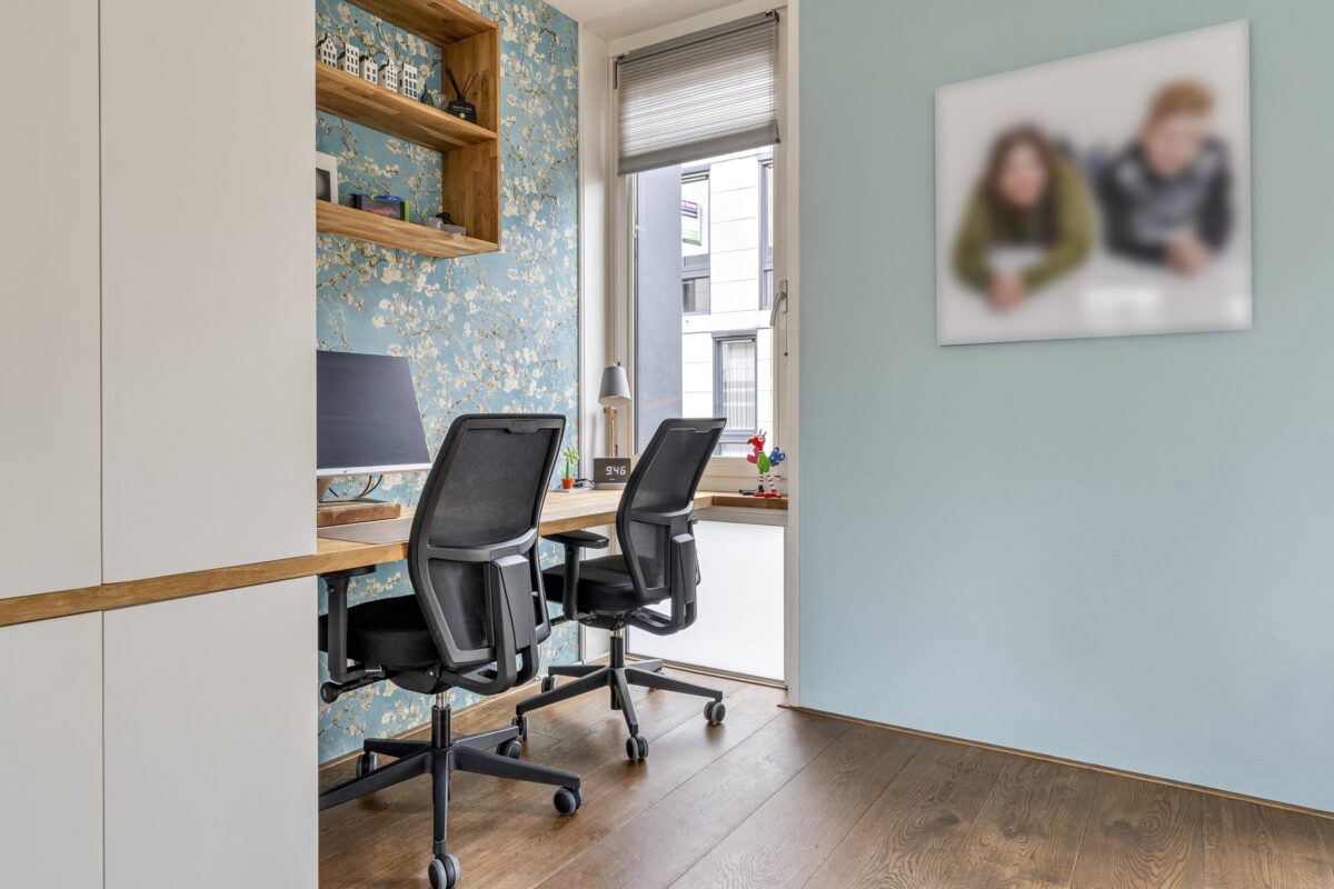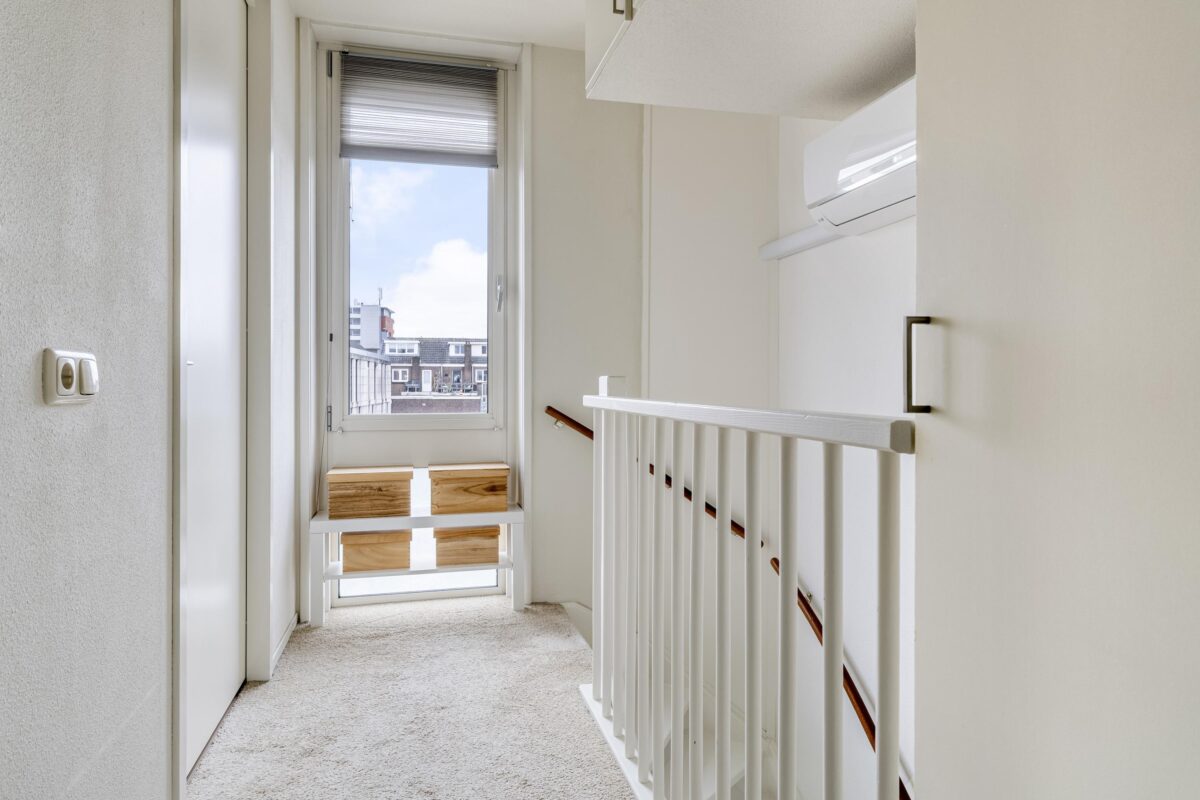 Op de tweede verdieping bevinden zich twee fijne slaapkamers, een complete moderne badkamer en op de overloop maatwerk kastwerk. Hier bevindt zich ook de strategisch geplaatste airconditioning, waardoor beide slaapkamers profiteren van een optimaal slaapklimaat. Door de centrale positie op de overloop kan zelfs de woonkamer op de eerste verdieping merkbaar worden gekoeld — ideaal tijdens warme zomerdagen.