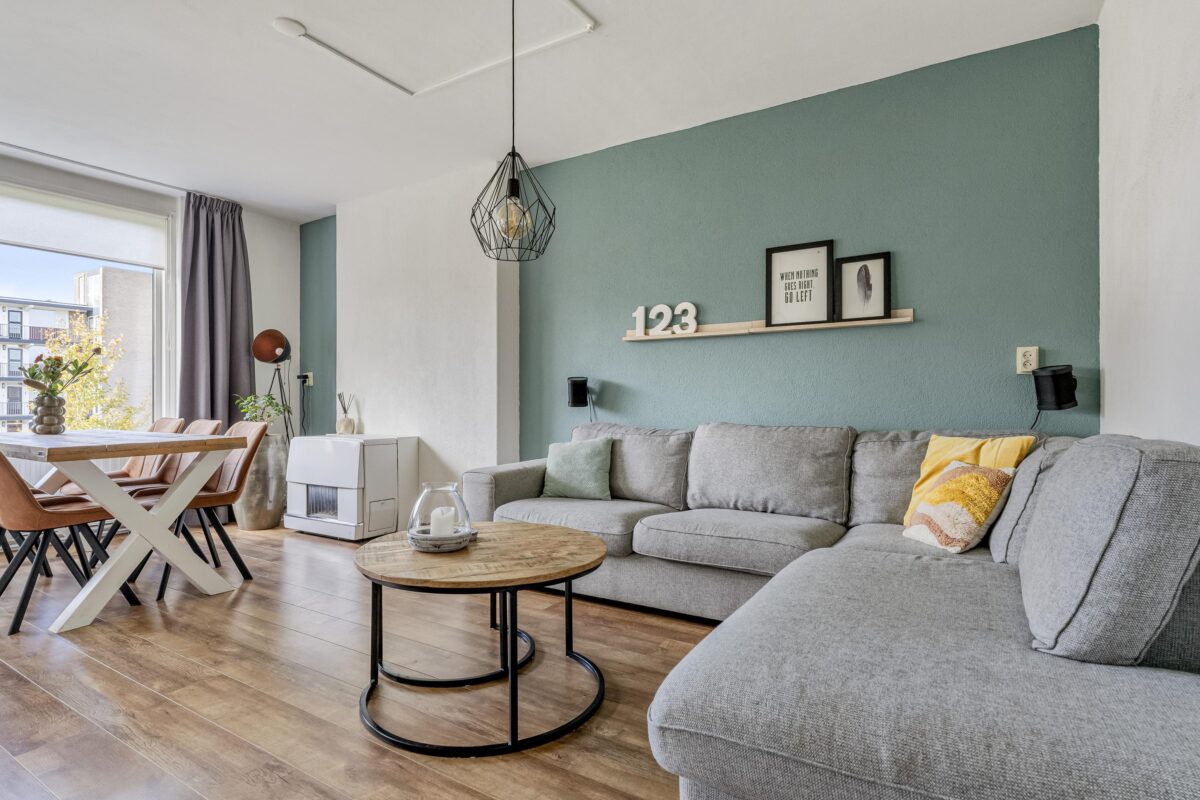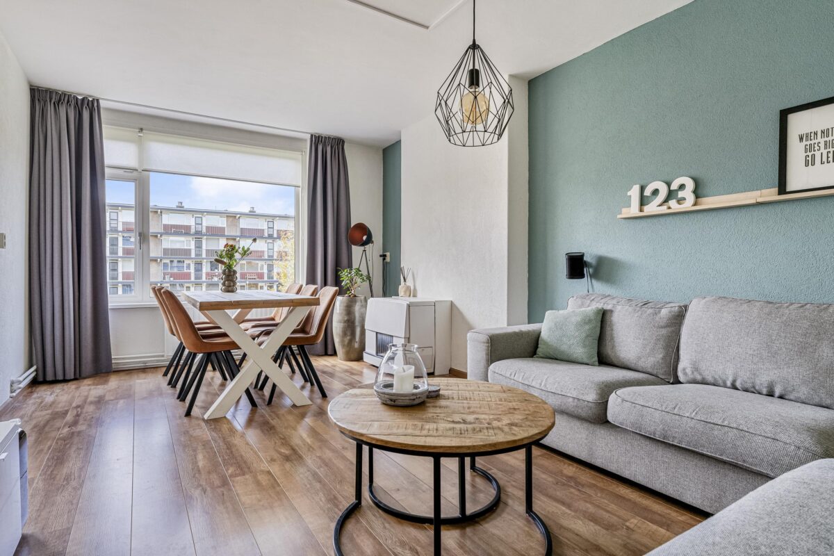 – Woonkamer met toegang tot zonnig balkon (westen)