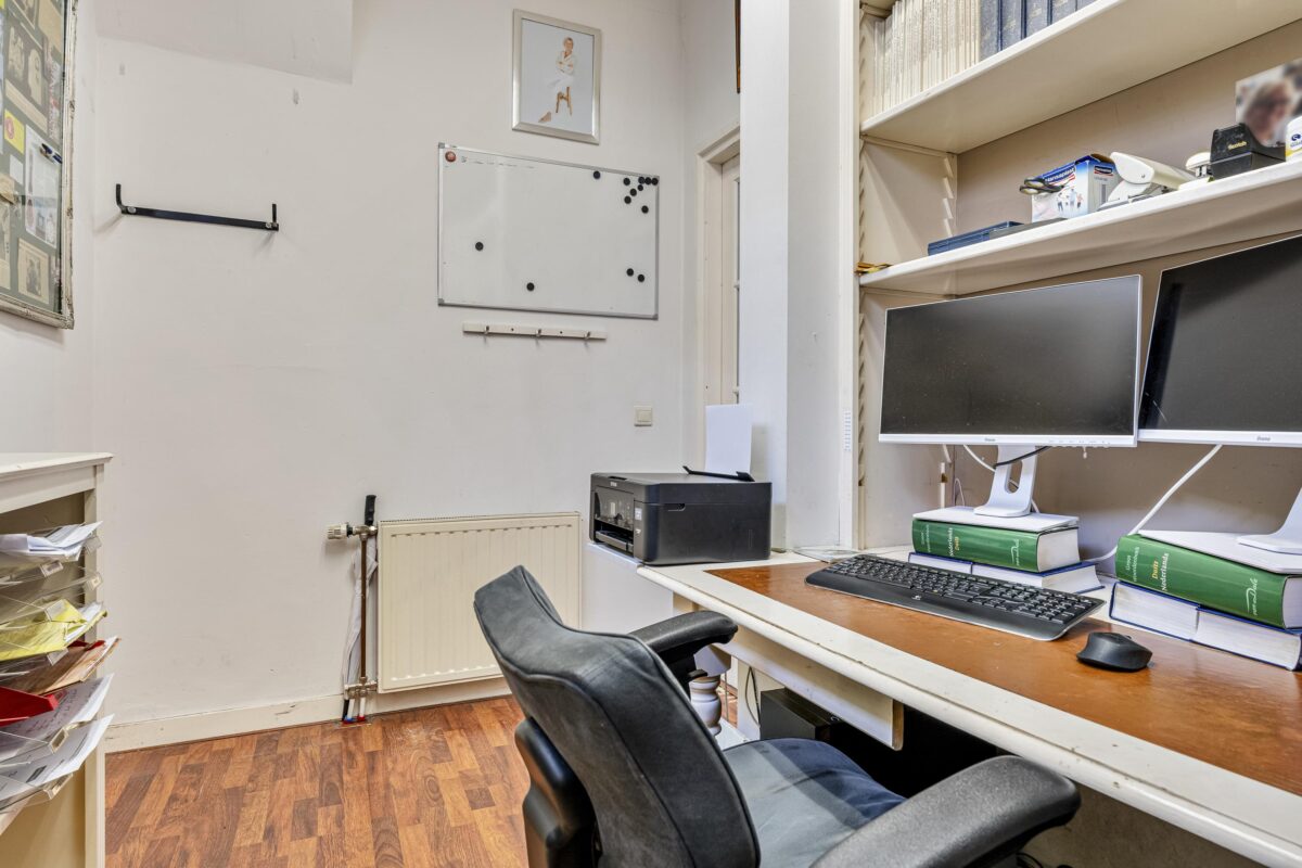 De huidige indeling biedt een praktische basis met onder andere een kantoorruimte, keuken, berging en een toilet. Daarnaast is er een grote open ruimte die zich perfect leent als woonkamer met (woon) keuken. De ruimte en flexibiliteit maken dit een interessante plek met mogelijkheden.