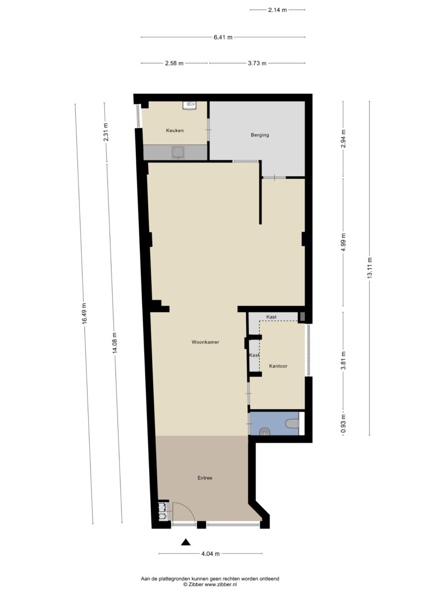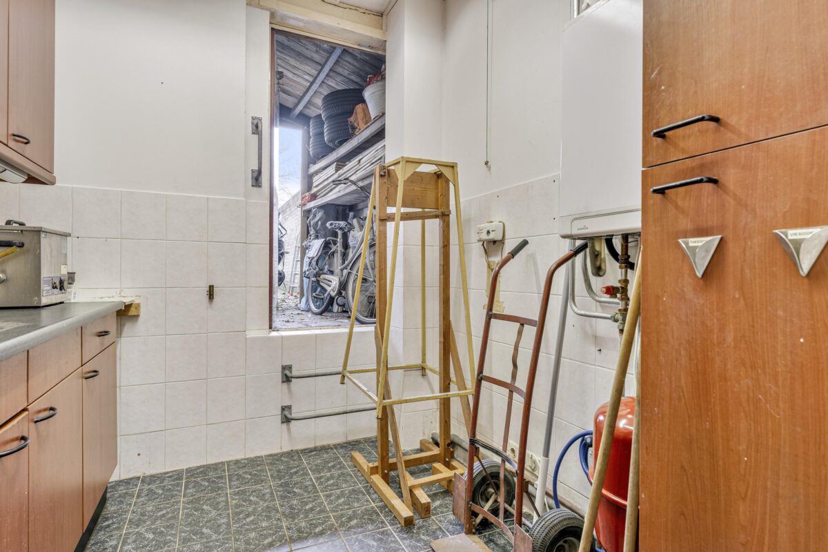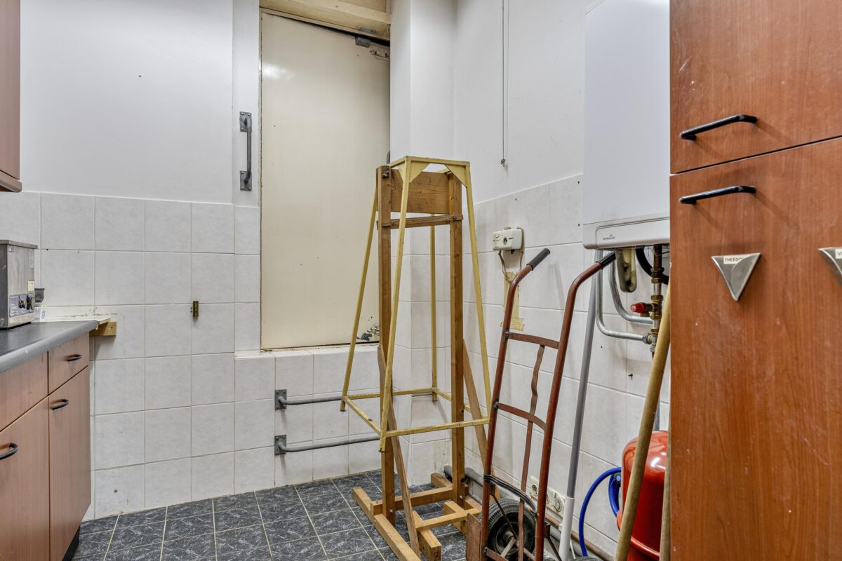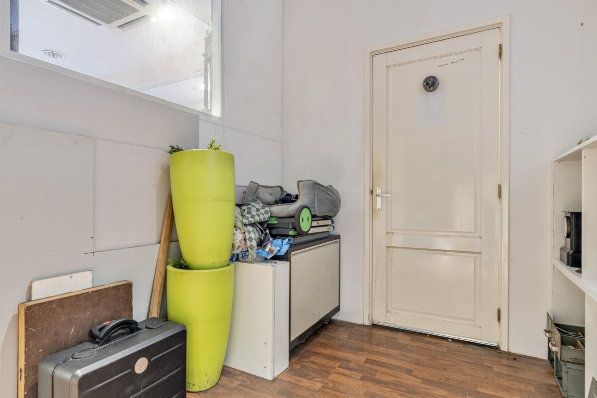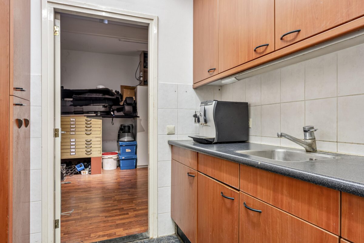 – Huidige indeling met kantoorruimte, keuken, berging en toilet
