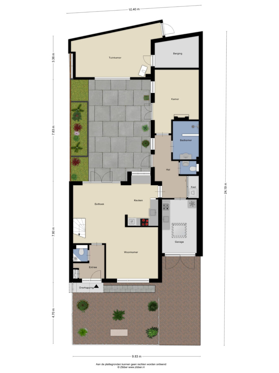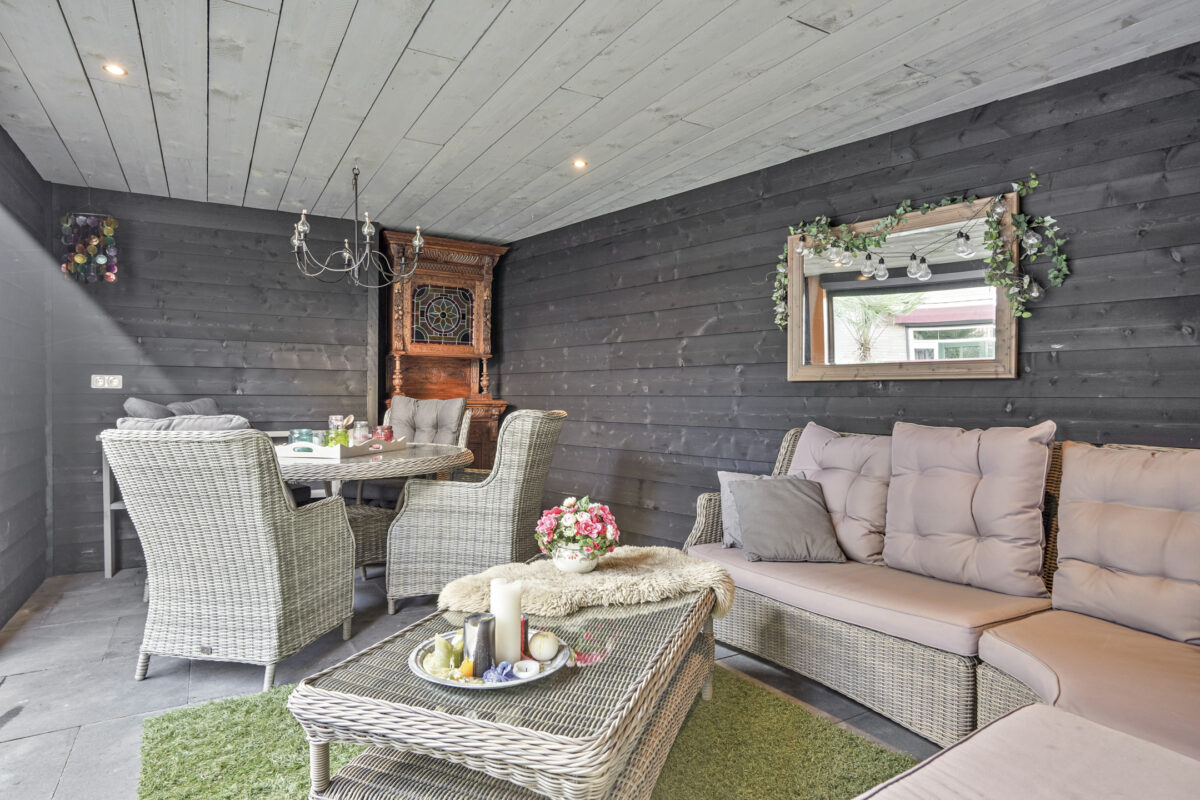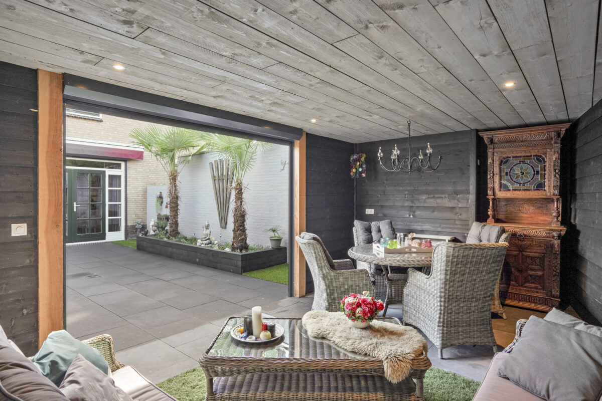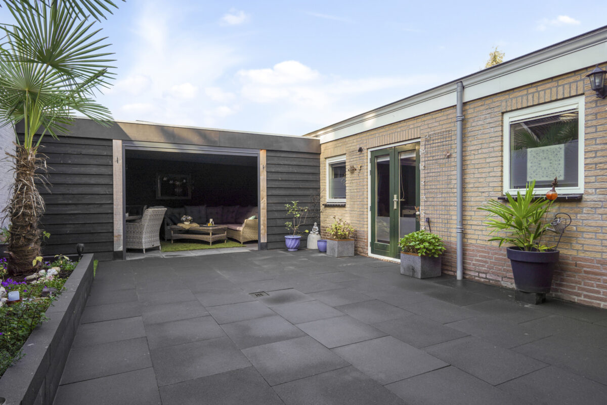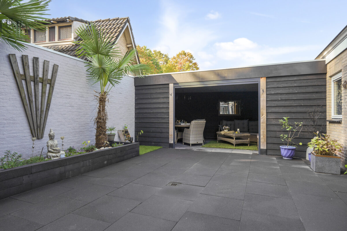 – Privacy biedende achtertuin met grote overkapping/tuinkamer welke is af te sluiten met een rolluik.