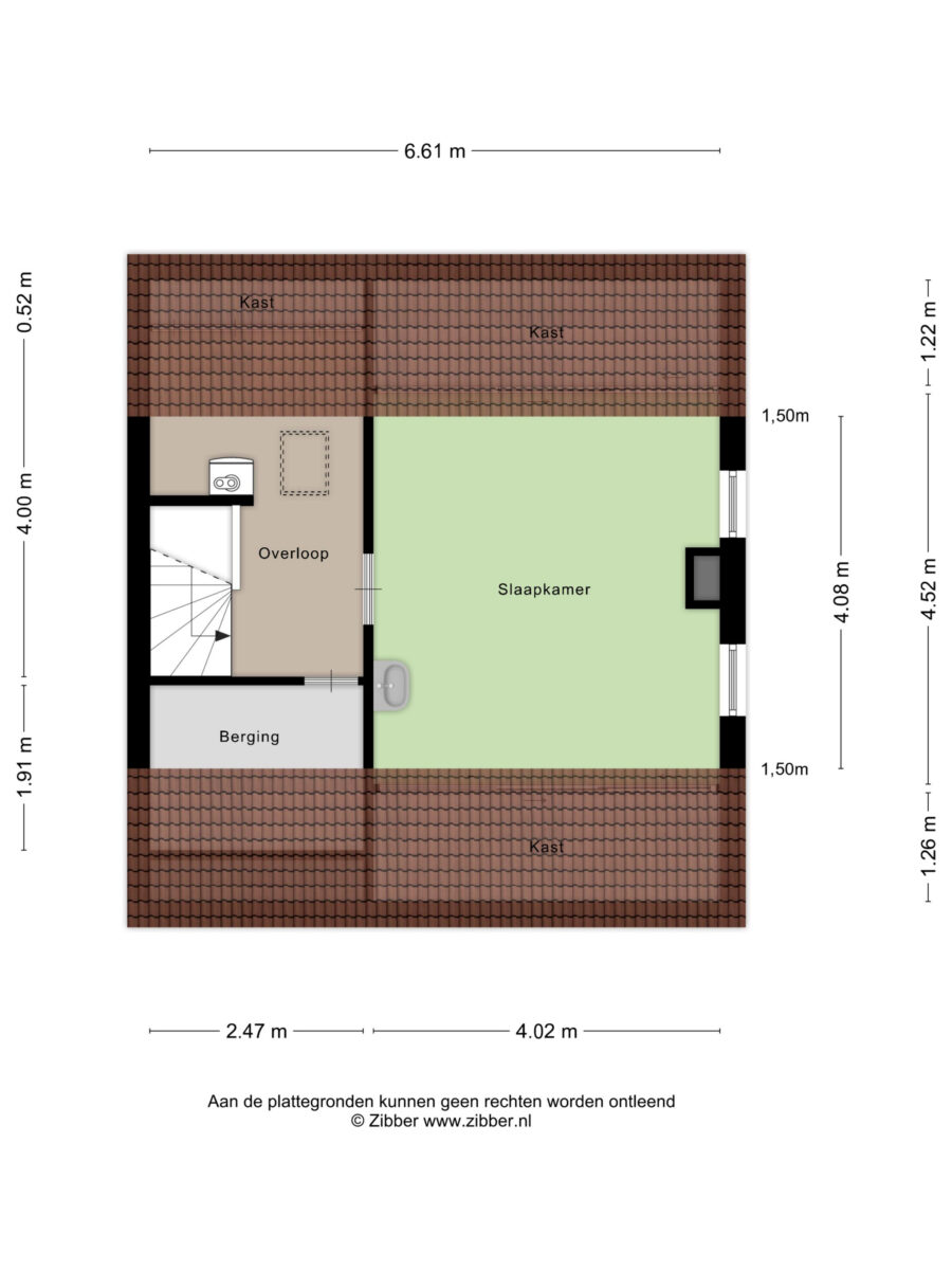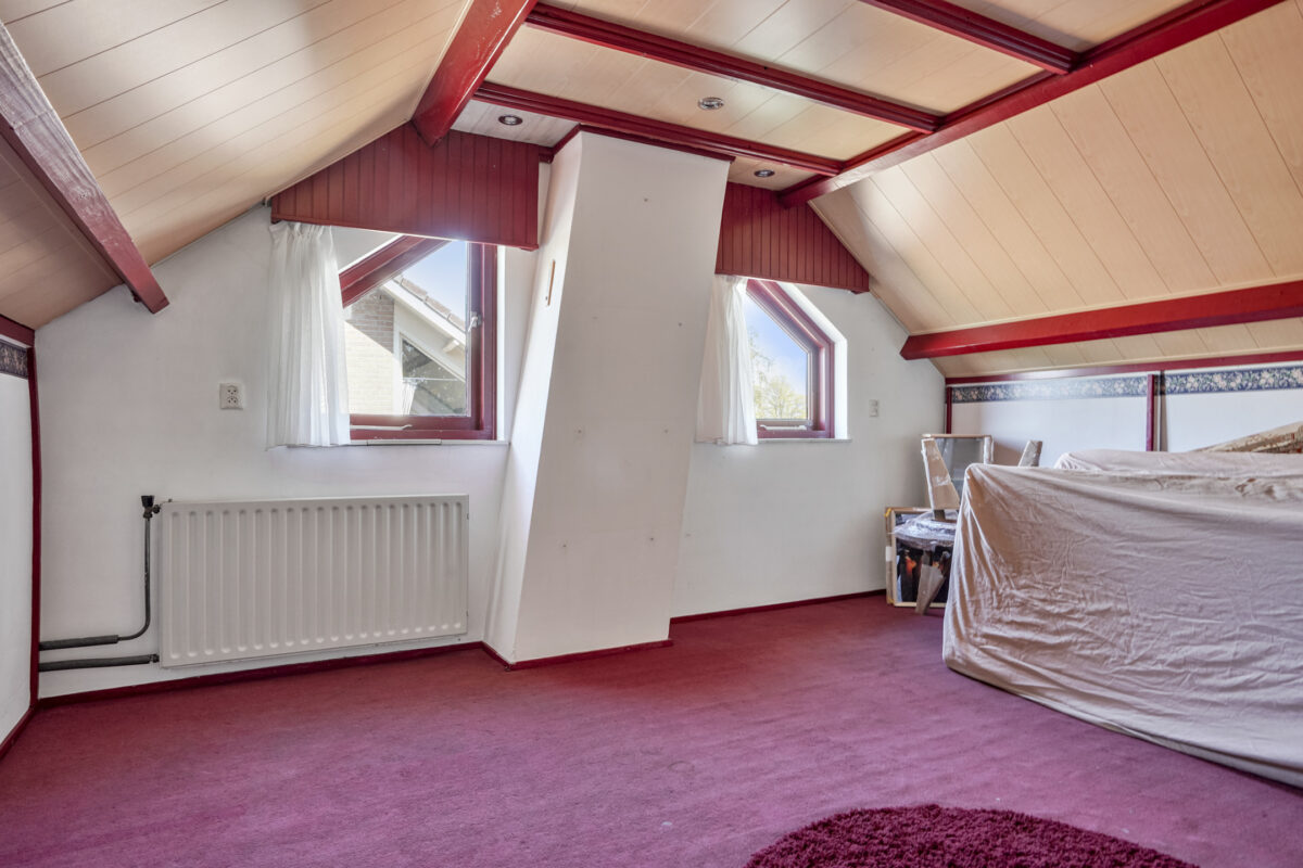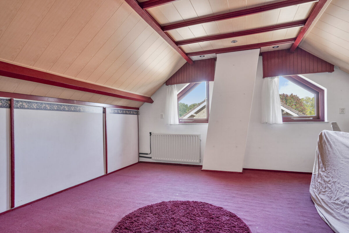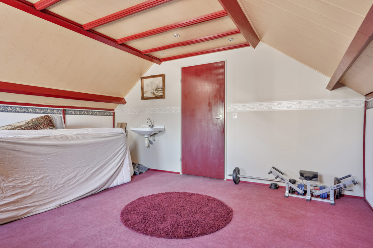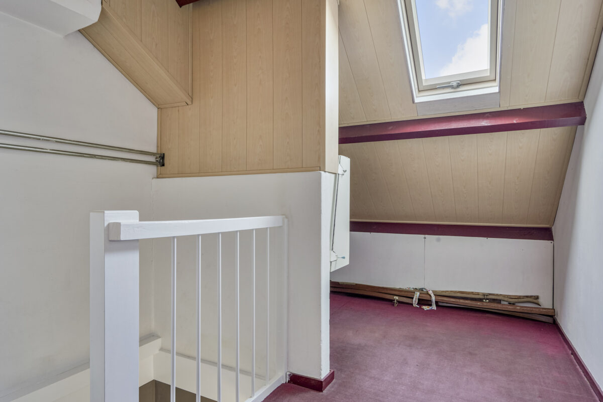 – Ruime slaapkamer op tweede verdieping met de mogelijkheid tot het plaatsen van een dakkapel en eveneens veel bergruimte.