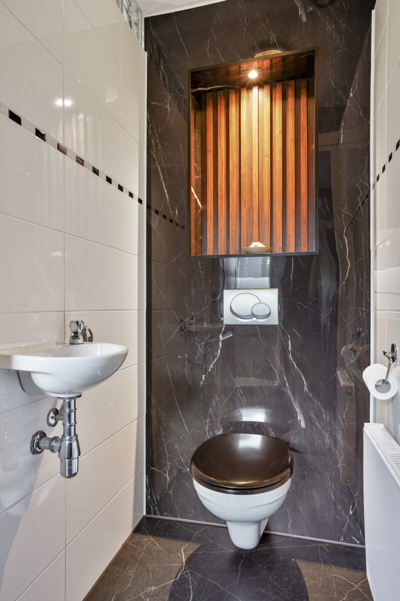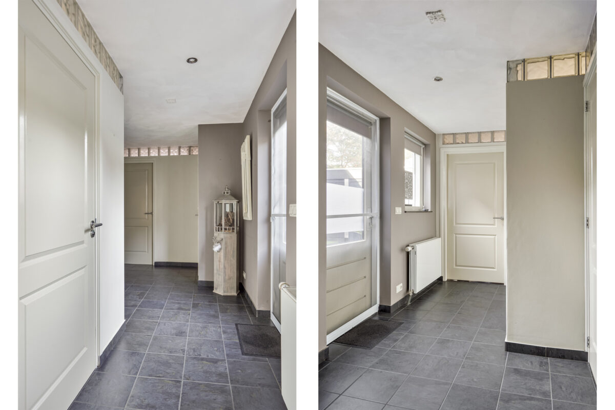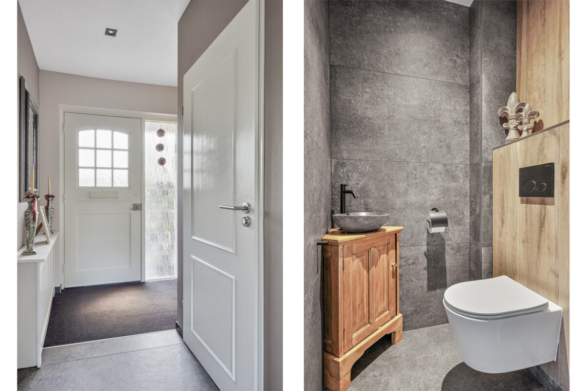 – Hal met garderobehoek, moderne meterkast en een toilet.